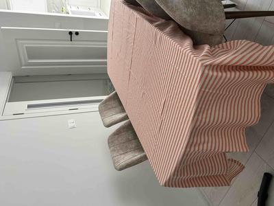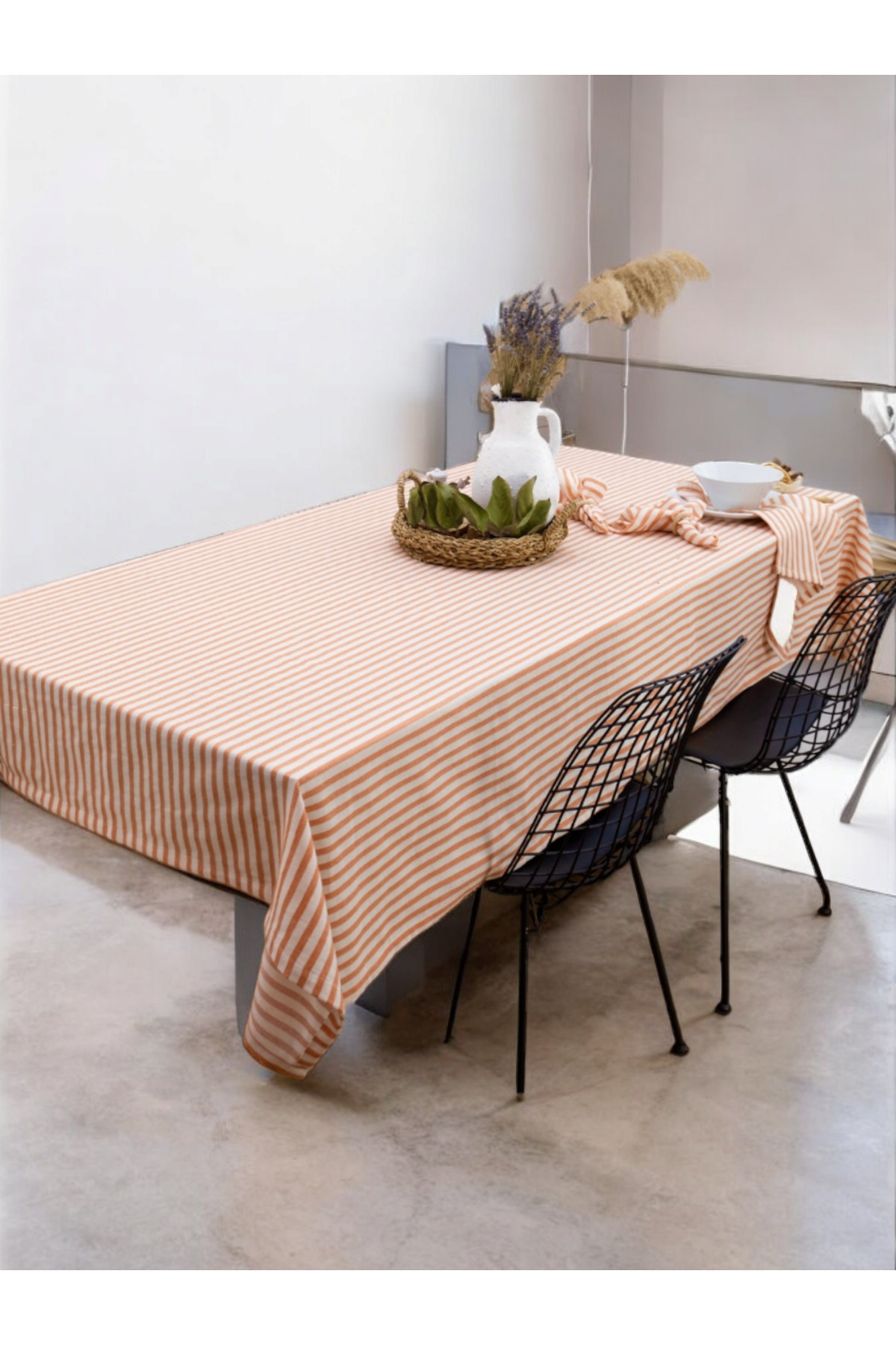 Turuncu Cizgili Ham Pamuk Keten Masa Örtüsü Turuncu Cizgili Ham Pamuk Keten Masa Örtüsü ketenortub 180 x 180