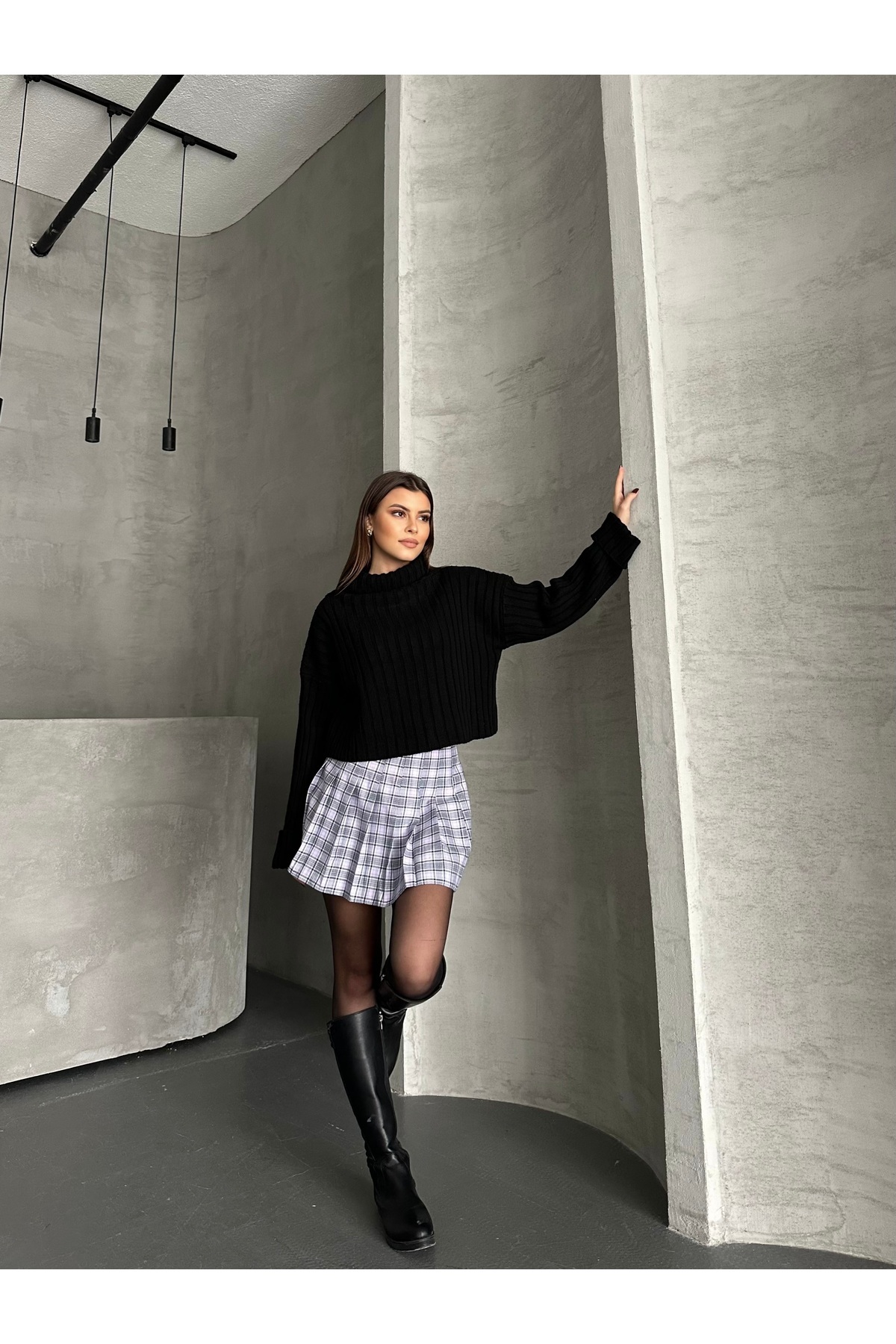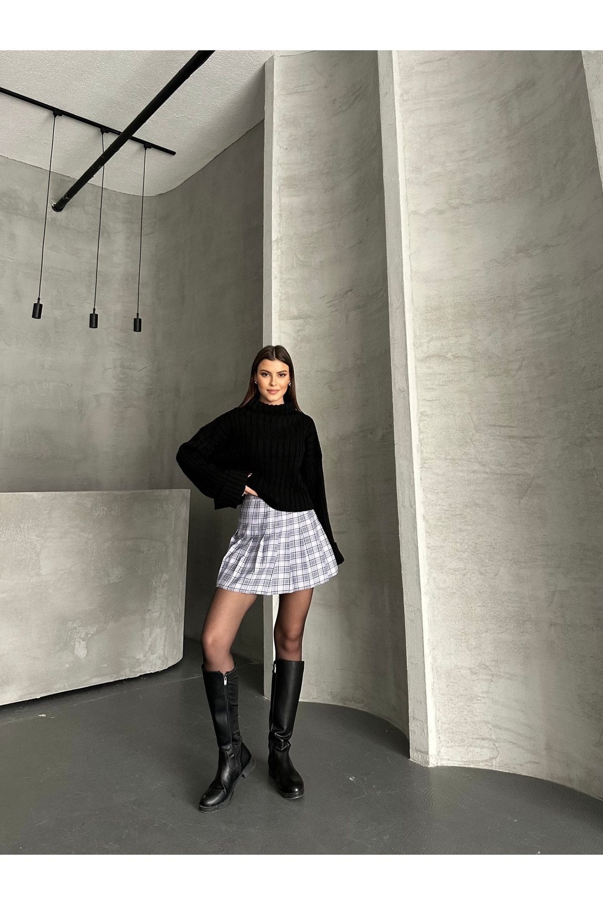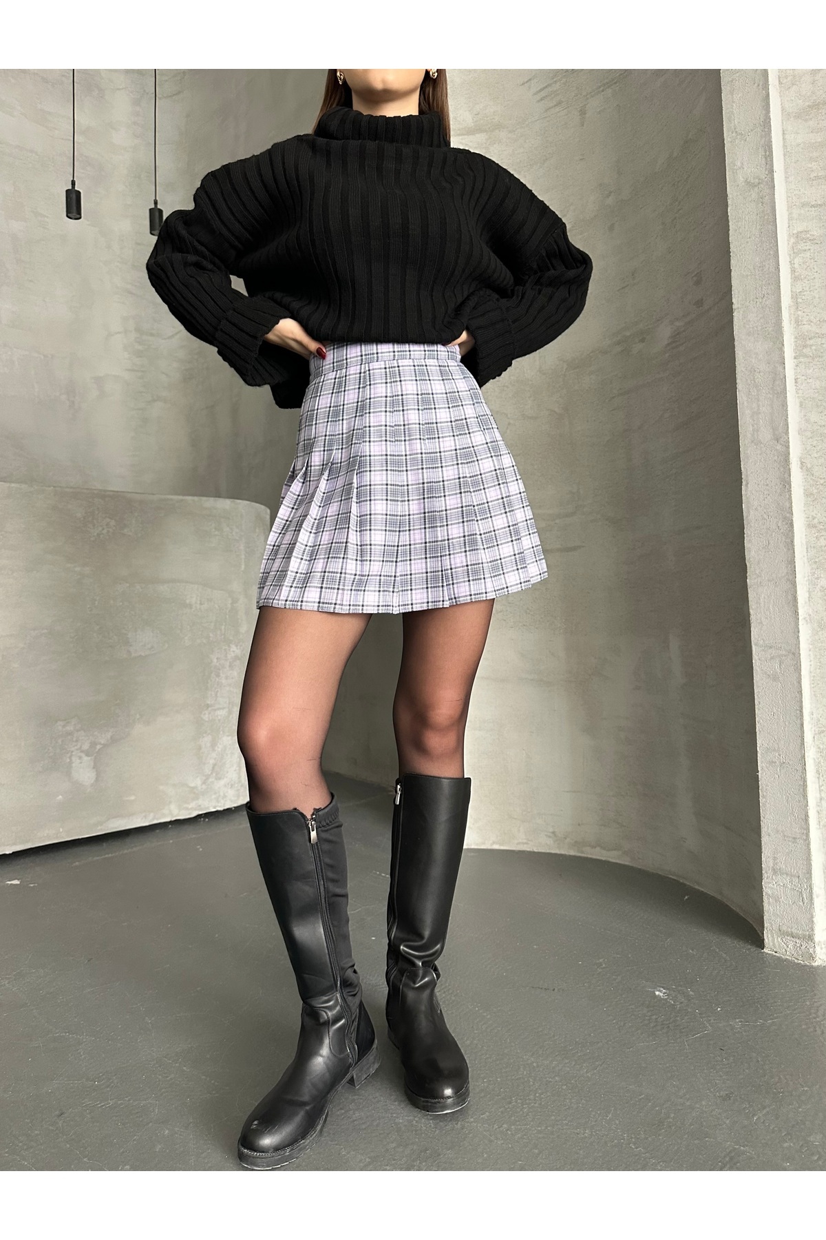 Ekose Pileli Mini Etek Ekose Pileli Mini Etek 0052 XL