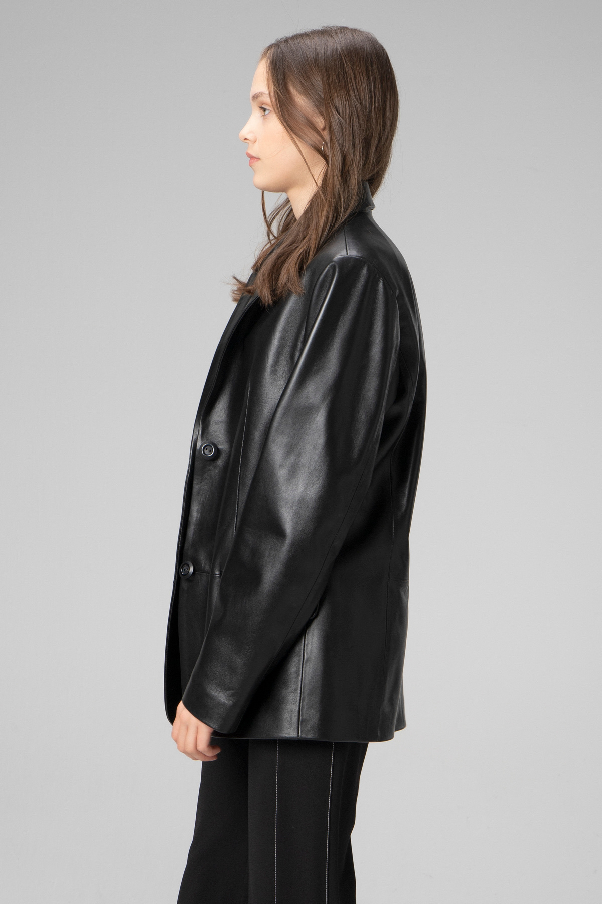 Bloom Kadın Oversize Düğmeli Hakiki Deri Blazer Ceket Siyah Bloom Kadın Oversize Düğmeli Hakiki Deri Blazer Ceket Siyah WM05 4XL