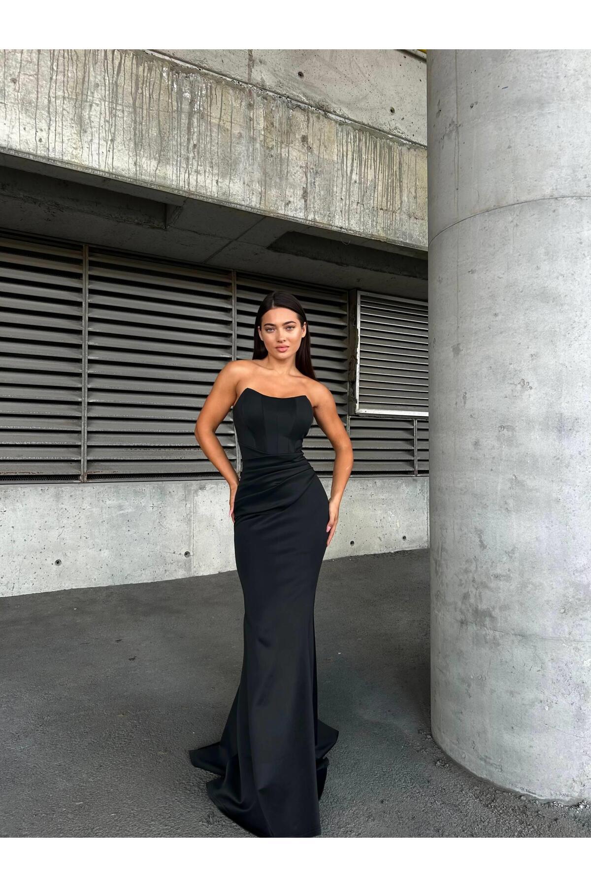 Straplez Ön Detay Saten Abiye Straplez Ön Detay Saten Abiye 36523 XL