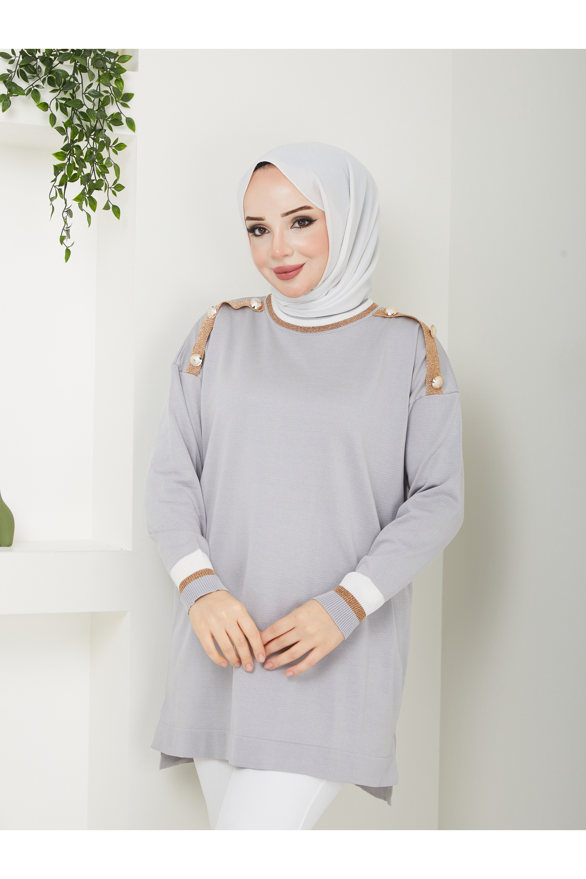 Taş Detaylı Çizgili Merserize Tunik Taş Detaylı Çizgili Merserize Tunik 4030 Standart