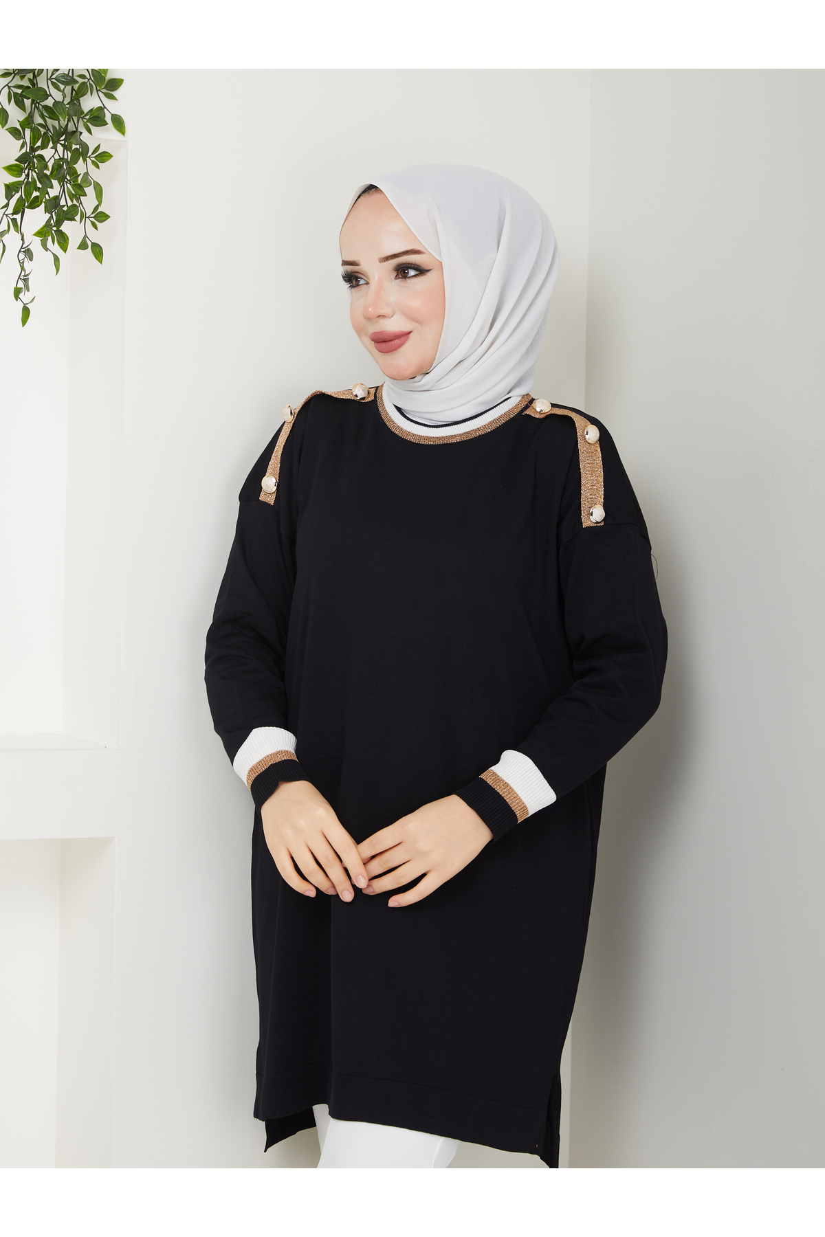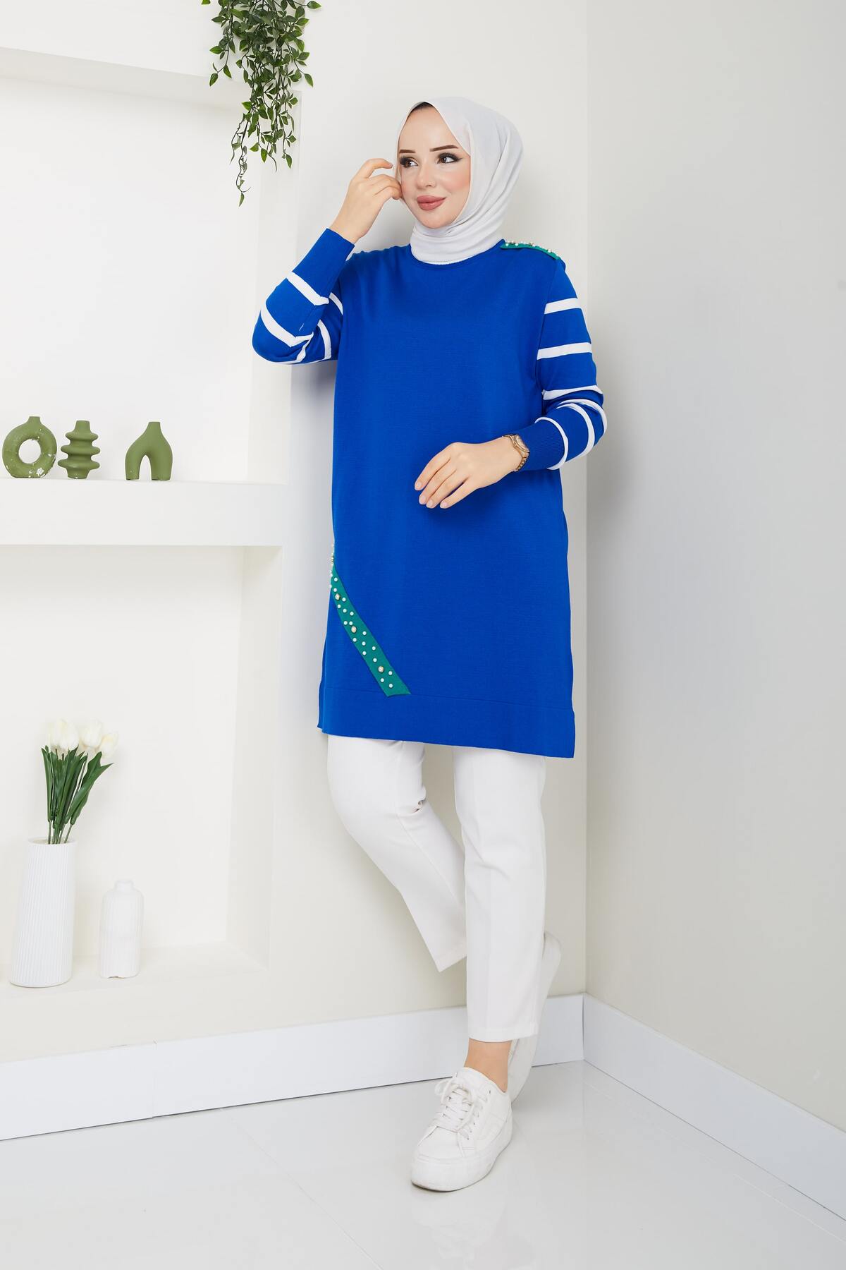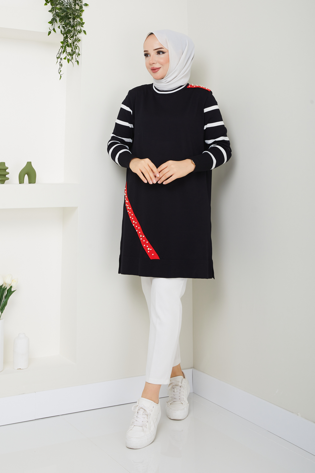 Taş Detaylı Çizgili Merserize Tunik Taş Detaylı Çizgili Merserize Tunik 4030 Standart