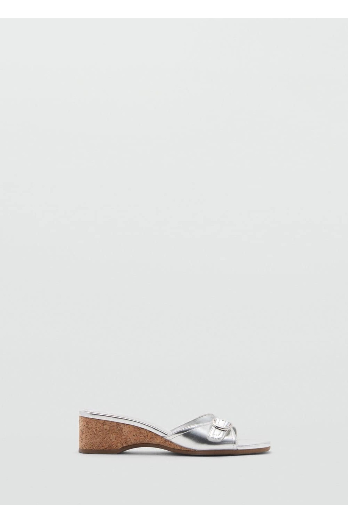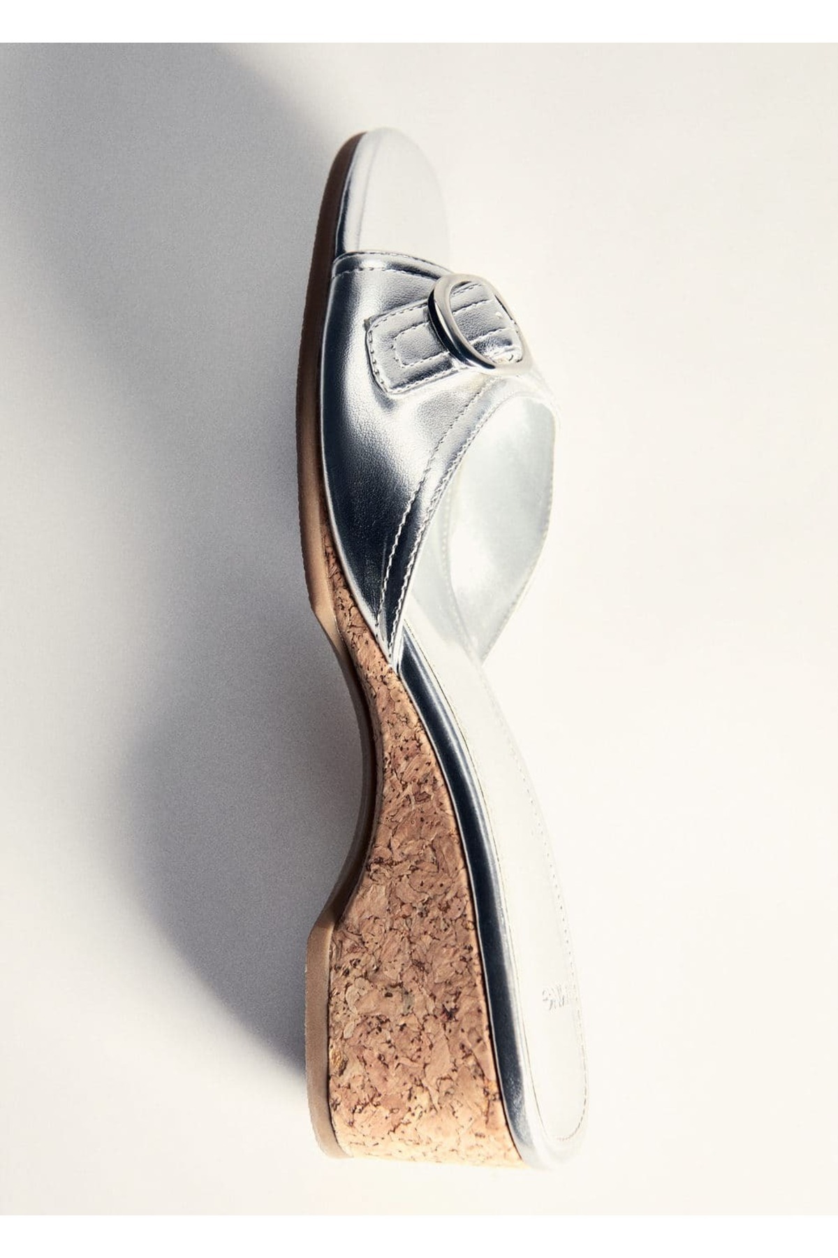 Toka detaylı metalik dolgu topuklu sandalet Toka detaylı metalik dolgu topuklu sandalet 77030365 41