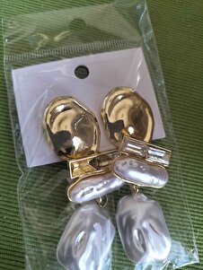 Vintage Tasarım Barok Incili Sallantılı Gold Detaylı Şık Küpe Vintage Tasarım Barok Incili Sallantılı Gold Detaylı Şık Küpe MBRL012 0