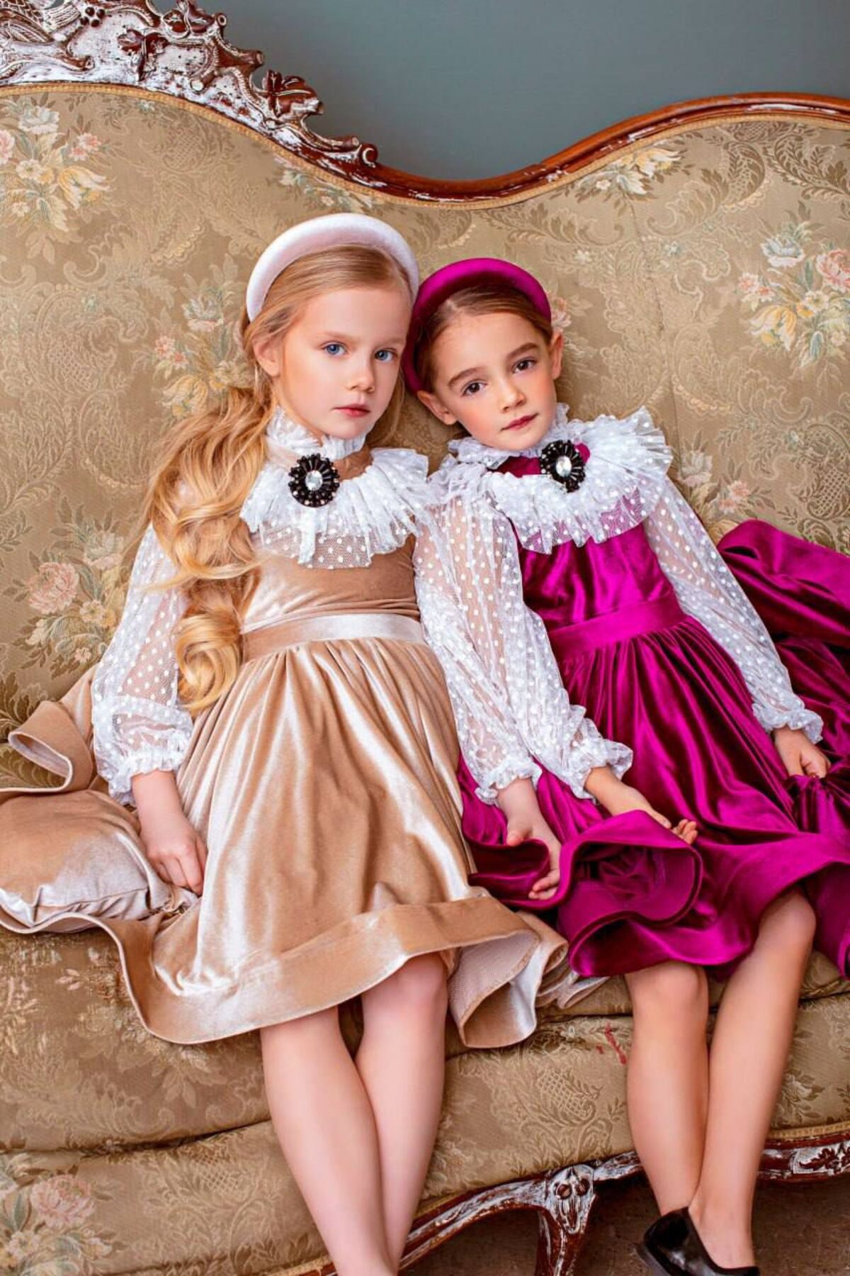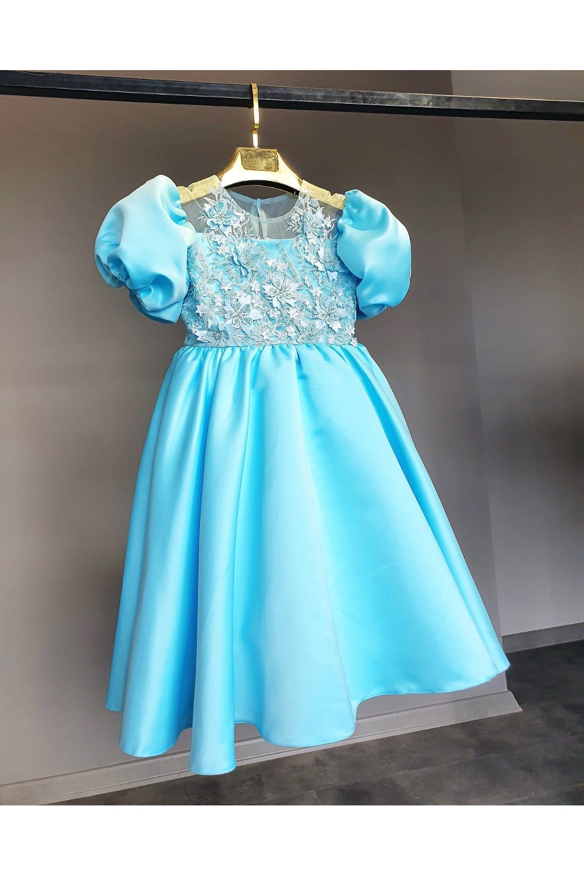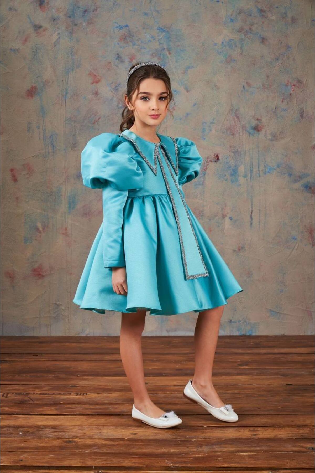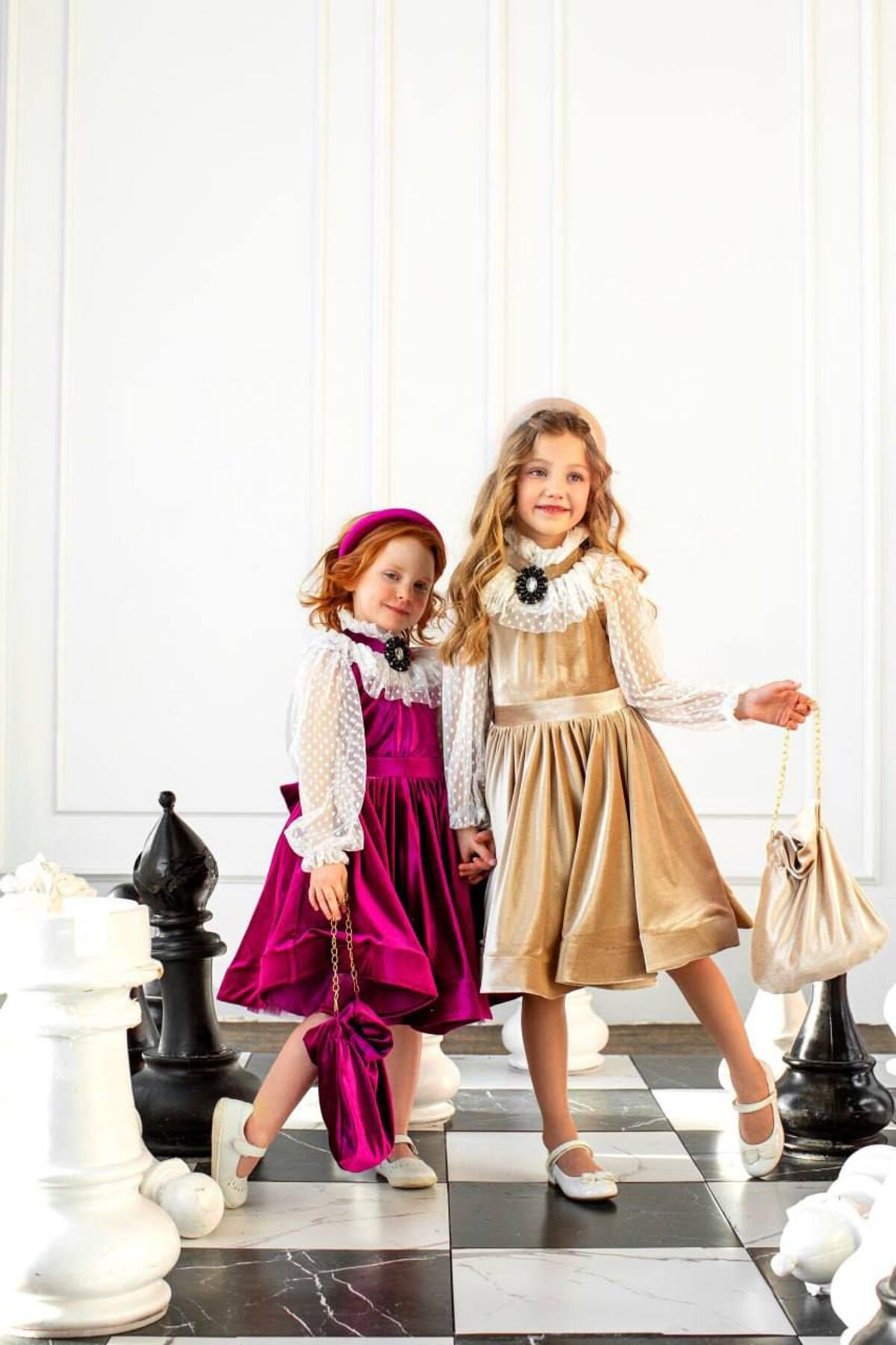 Kolları Tüllü Vintage Kız Çocuk Kadife Elbise Kolları Tüllü Vintage Kız Çocuk Kadife Elbise PT22555 11-12 Yaş