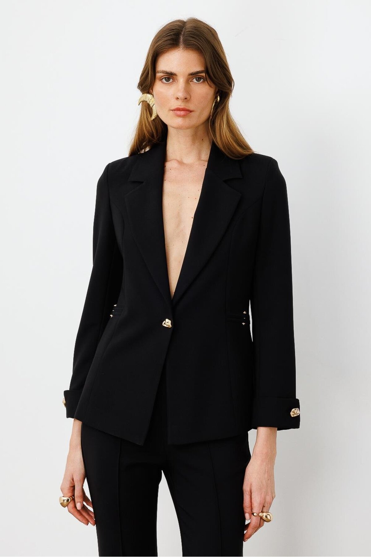 Modailgi Yarım Astarlı Düğme Detaylı Ceket Siyah Modailgi Yarım Astarlı Düğme Detaylı Ceket Siyah ILG241CKT07526 46