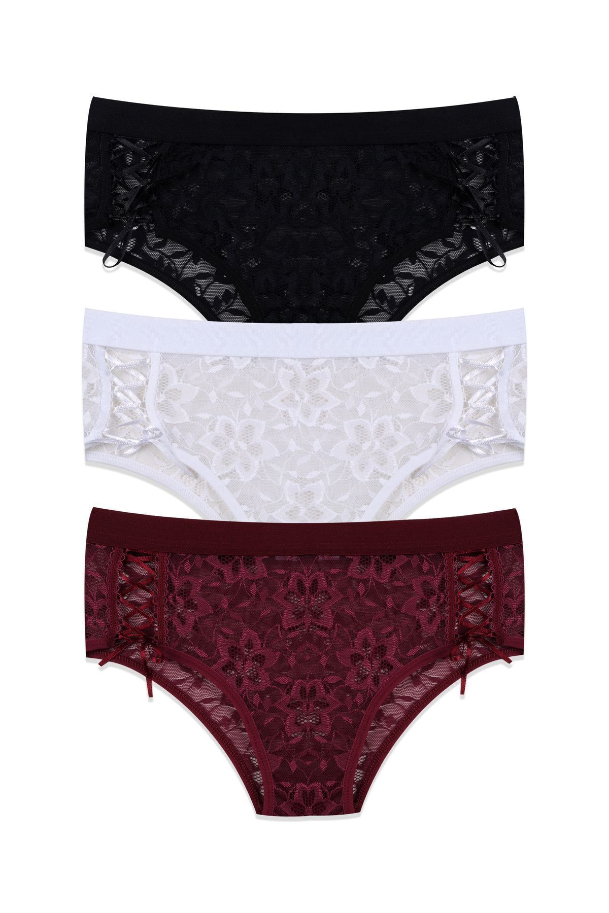 Kadın 3'lü Kalp Detaylı Dantelli Külot Kadın 3'lü Kalp Detaylı Dantelli Külot 20832 S/M