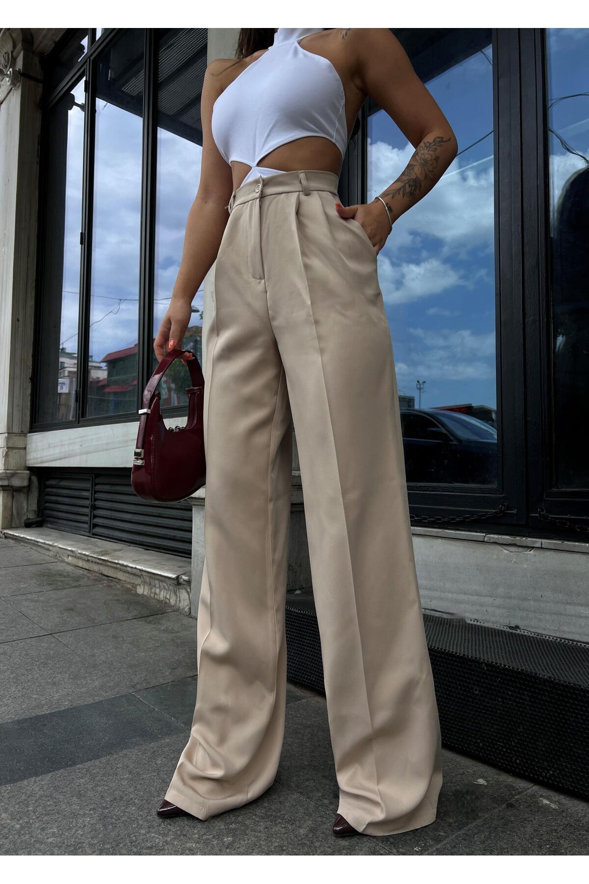 Kadın Pileli Yüksek Bel Kumaş Palazzo Pantolon Kadın Pileli Yüksek Bel Kumaş Palazzo Pantolon fidosa01 46