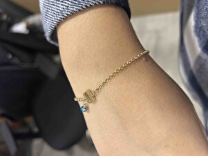 14 Ayar Altın Göz Sallantılı Harf Bileklik(Ü) 14 Ayar Altın Göz Sallantılı Harf Bileklik(Ü) DG41668 تک سایز