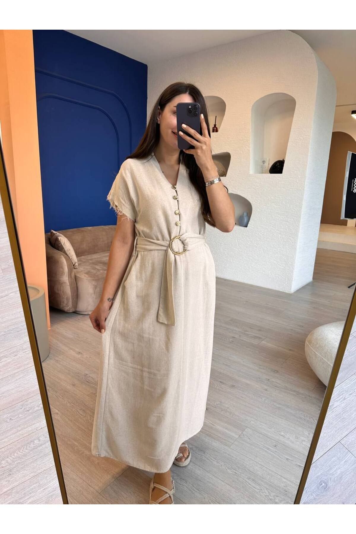 Krem Etnik Desenli Kimono Elbise Krem Etnik Desenli Kimono Elbise F78 L
