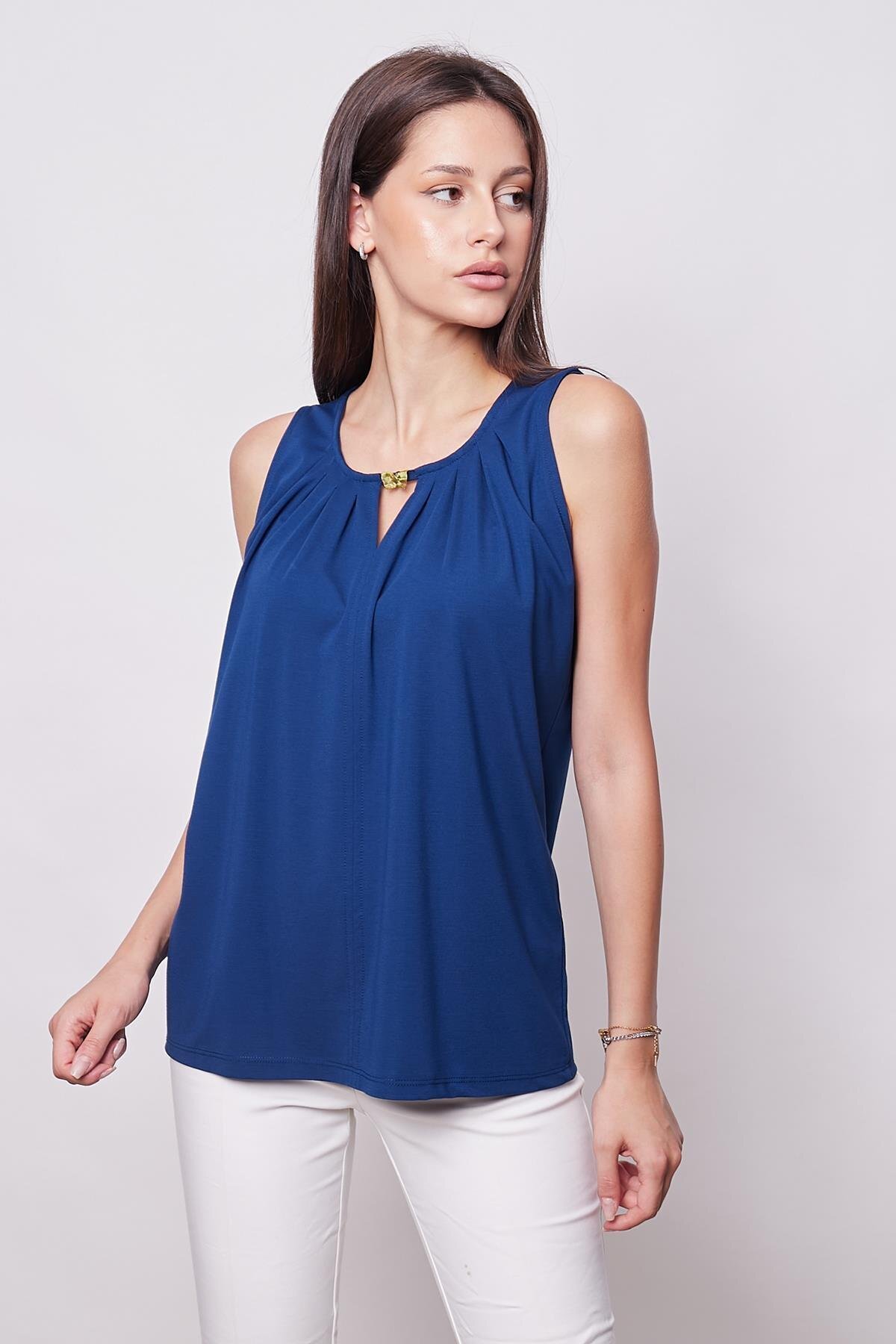 Kadın Kırışmaz Span Karışımlı Geniş Sıfır Yaka Yakası Pileli Aksesuarlı Kolsuz T-shirt Bluz-Lacivert Kadın Kırışmaz Span Karışımlı Geniş Sıfır Yaka Yakası Pileli Aksesuarlı Kolsuz T-shirt Bluz-Lacivert 20496 XL