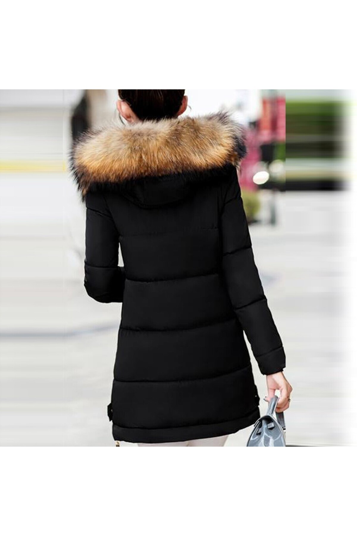 Kürk Yaka Kapüşonlu Kışlık Kadın Şişme Mont Kürk Yaka Kapüşonlu Kışlık Kadın Şişme Mont 7112siyahcs 2XL