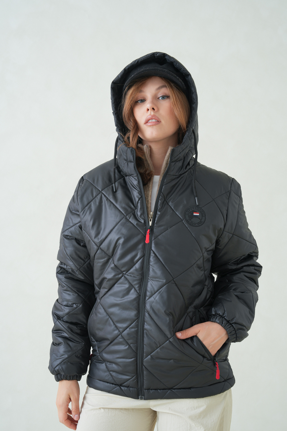 Kadın Baklava Desen Kapüşonlu Siyah Ultra Hafif Mevsimlik Mont Kadın Baklava Desen Kapüşonlu Siyah Ultra Hafif Mevsimlik Mont QBKM-65 3XL