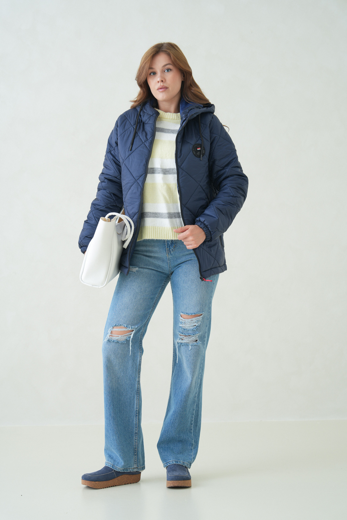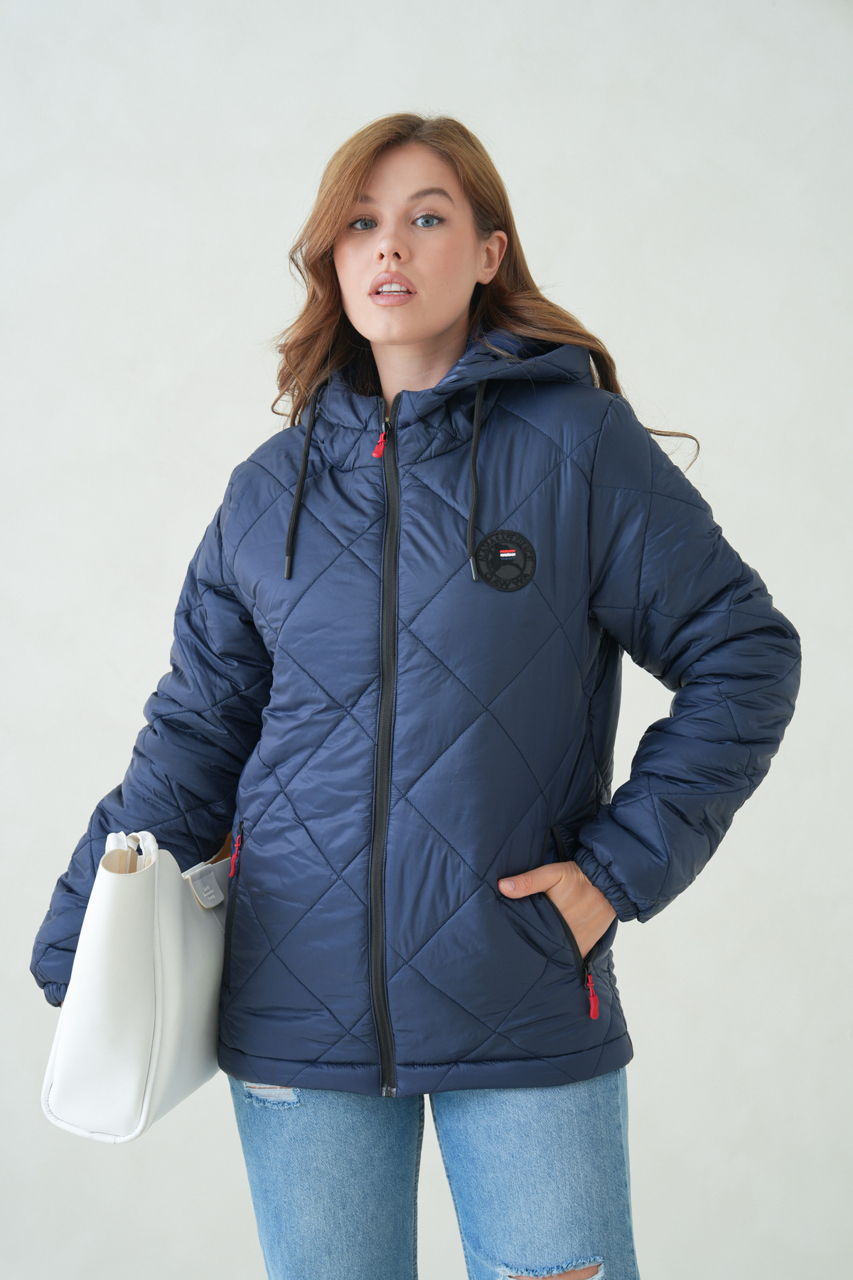 Kadın Baklava Desen Kapüşonlu Lacivert Ultra Hafif Mevsimlik Mont Kadın Baklava Desen Kapüşonlu Lacivert Ultra Hafif Mevsimlik Mont QBKM-65 3XL