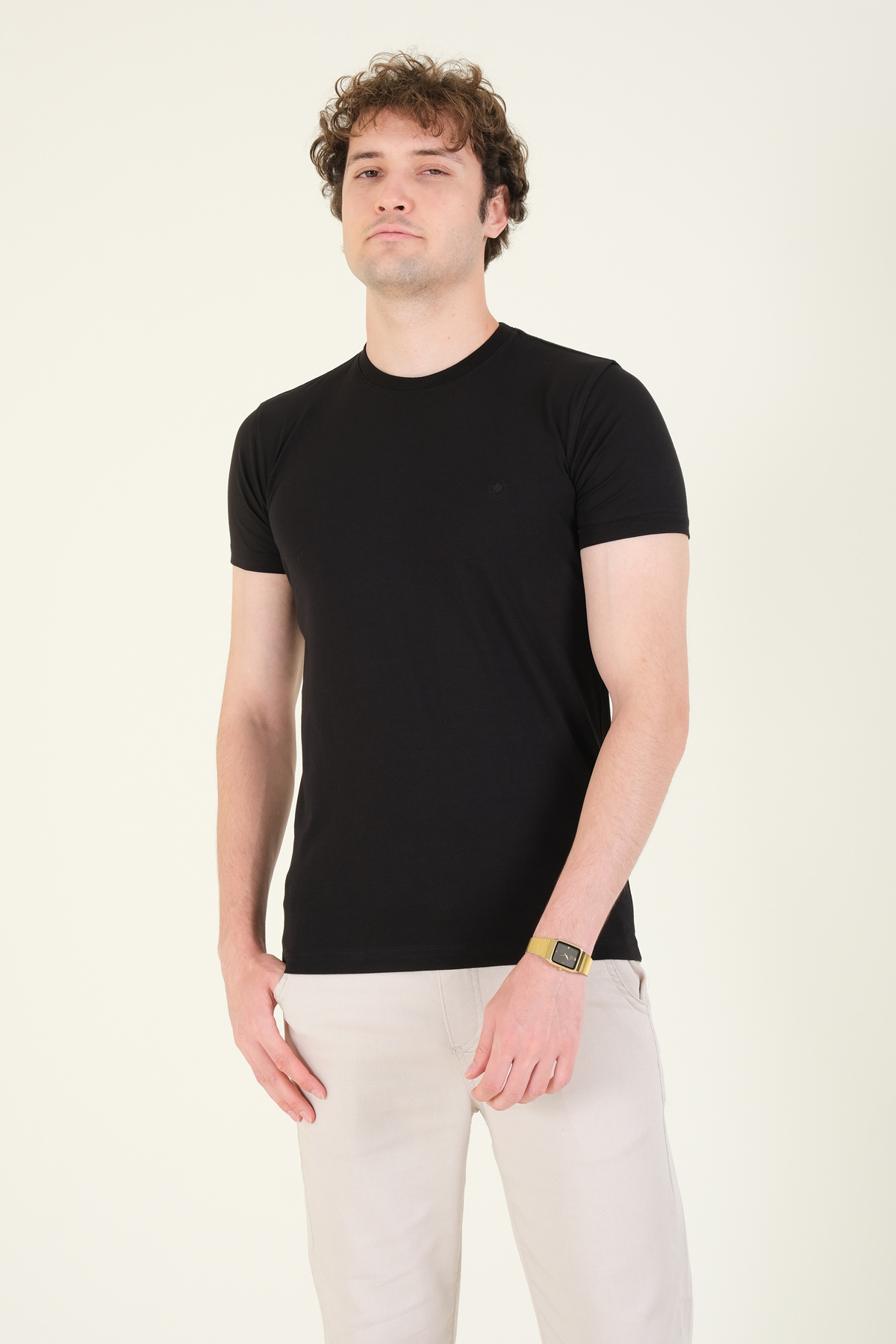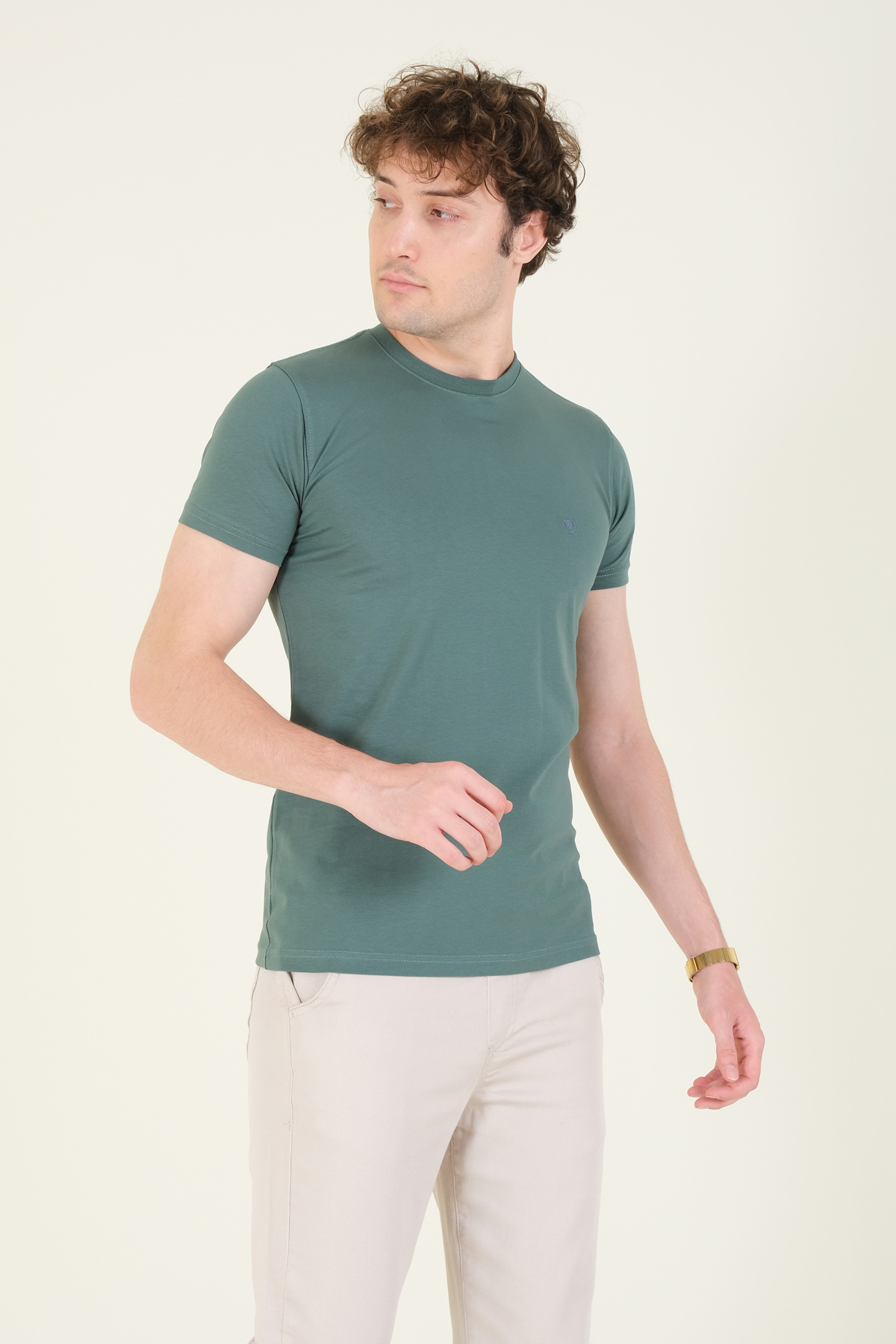 Erkek Sıfır Yaka Basic T-Shirt Haki Erkek Sıfır Yaka Basic T-Shirt Haki SMN.1019 2XL