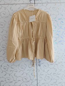 BAĞLAMA DETAYLI MÜSLİN BLUZ SOFT SARI BAĞLAMA DETAYLI MÜSLİN BLUZ SOFT SARI M-4152 M/L