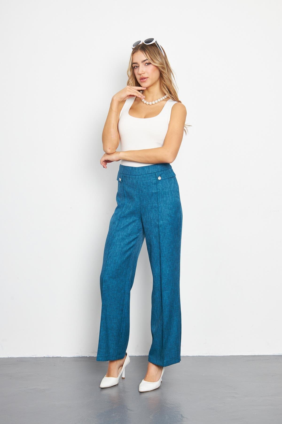 Düğme Detay Bol Paça Pantolon Lacivert Düğme Detay Bol Paça Pantolon Lacivert 218 50