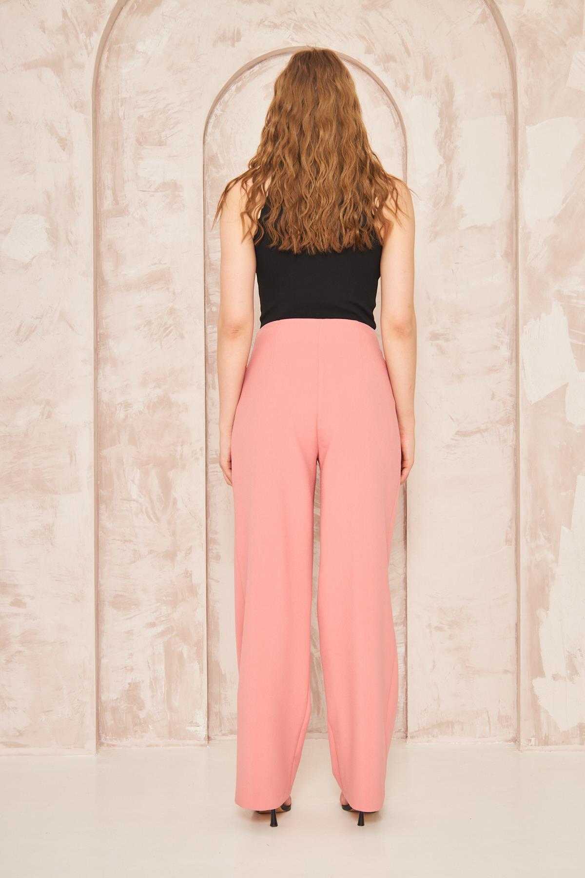 Düğme Detay Bol Paça Pantolon Gül Kurusu Düğme Detay Bol Paça Pantolon Gül Kurusu 218 50