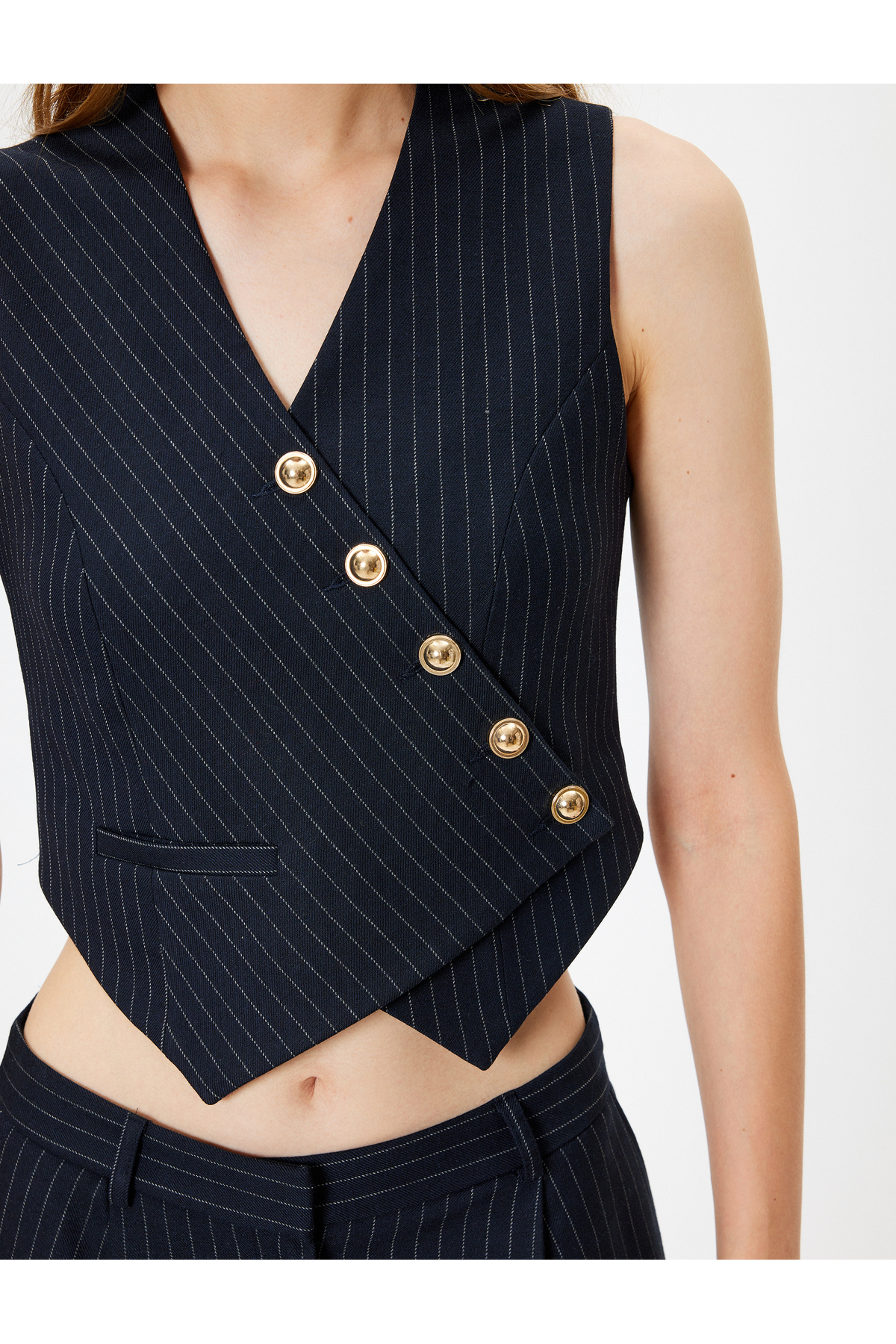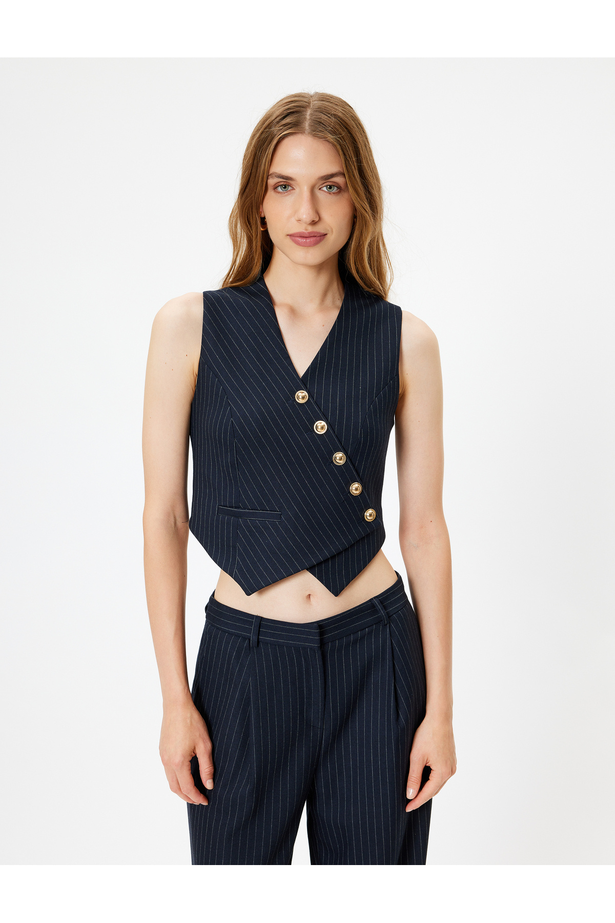Gold Düğme Detaylı Asimetrik Kruvaze Yelek Gold Düğme Detaylı Asimetrik Kruvaze Yelek 5WAK20011UW 42