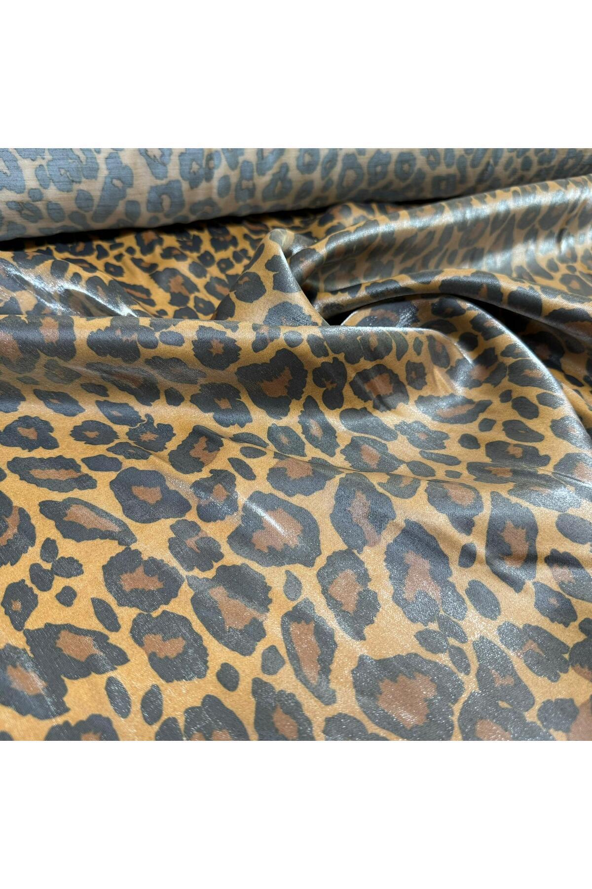 Floş Saten Kumaş Parlak Leopar Desenli Pamuklu Floş Saten Kumaş Parlak Leopar Desenli Pamuklu Floş Saten Leopar En 150 cm تک سایز