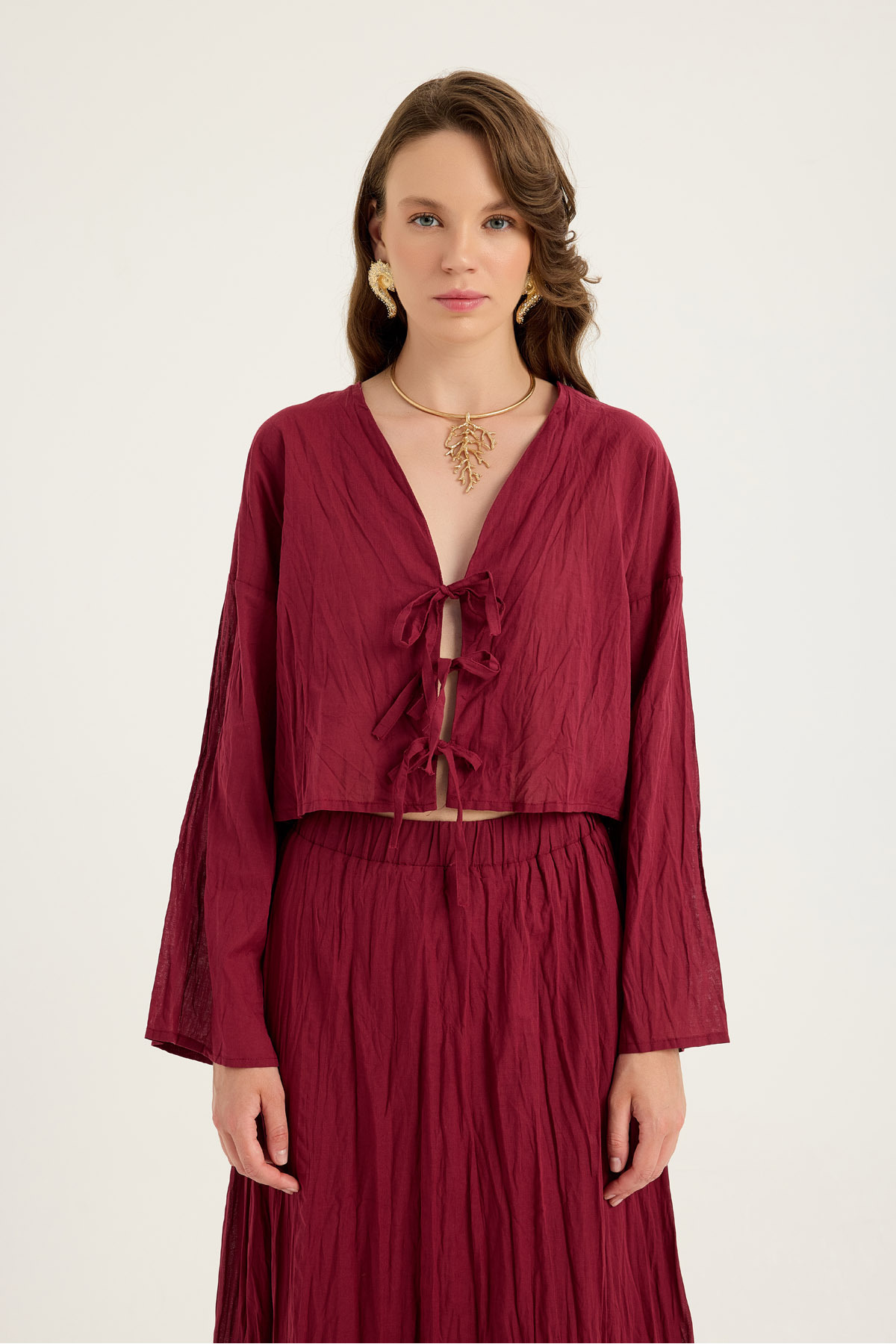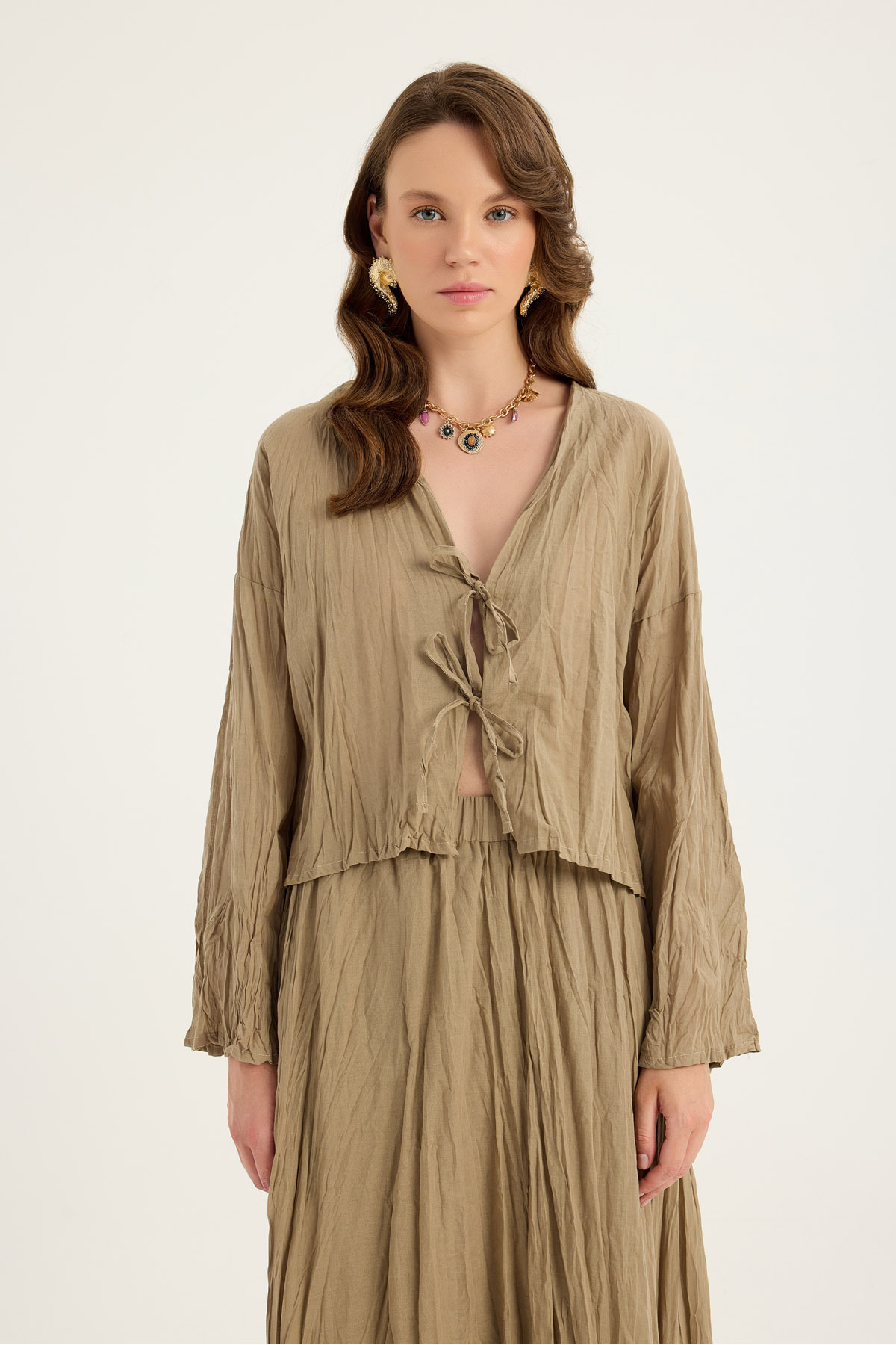 Natur Müslin Kumaş Önden Bağlamalı Bluz 27355 Natur Müslin Kumaş Önden Bağlamalı Bluz 27355 L