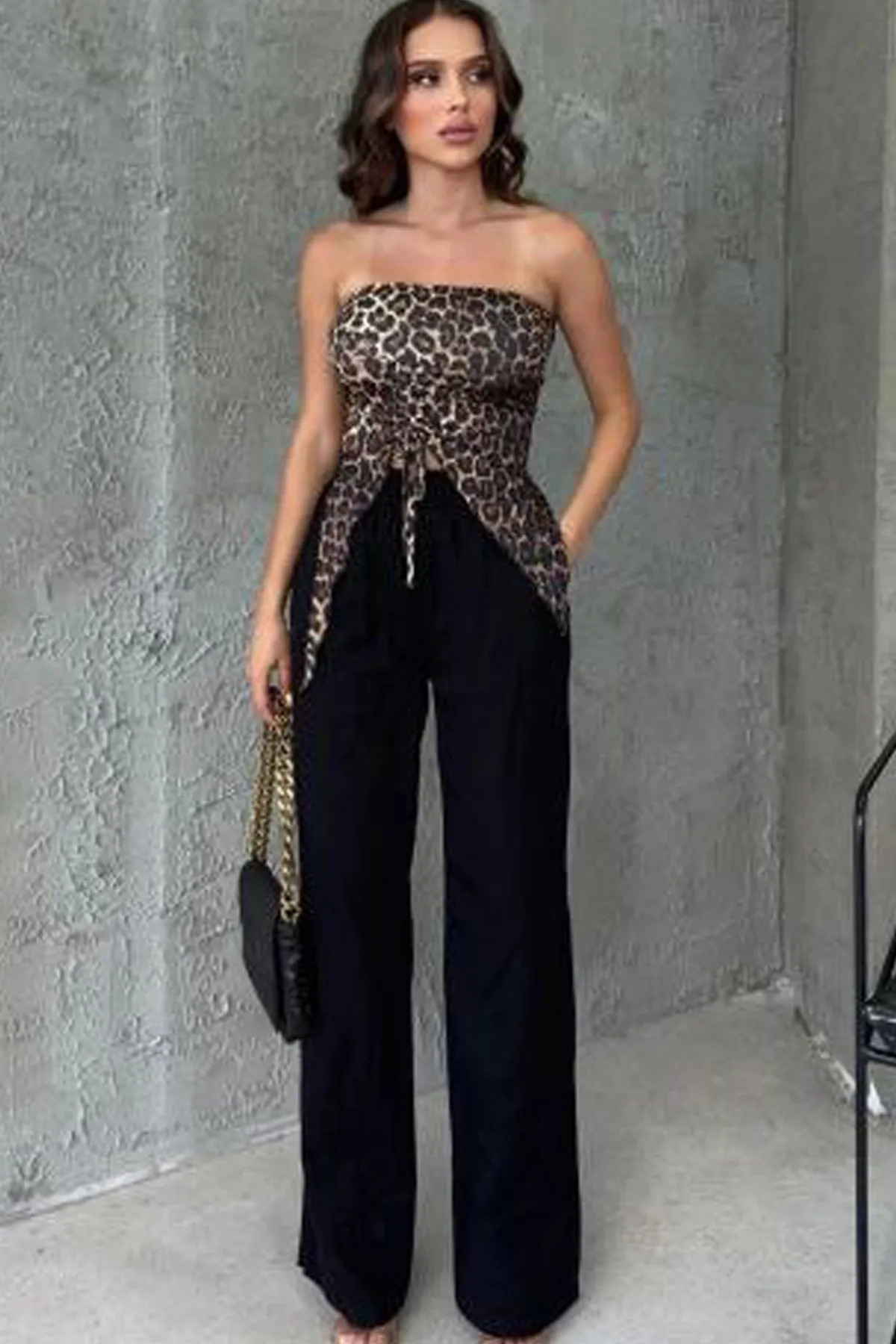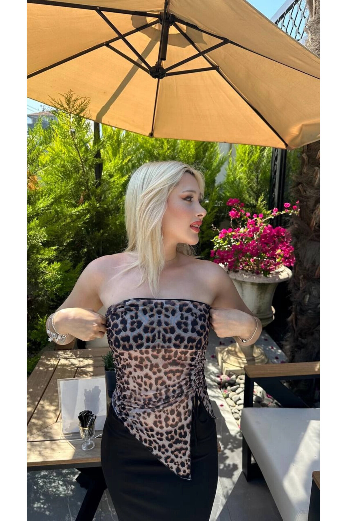Leopar Desenli Straplez Tül Bluz D4792AX24AU Leopar Desenli Straplez Tül Bluz D4792AX24AU L