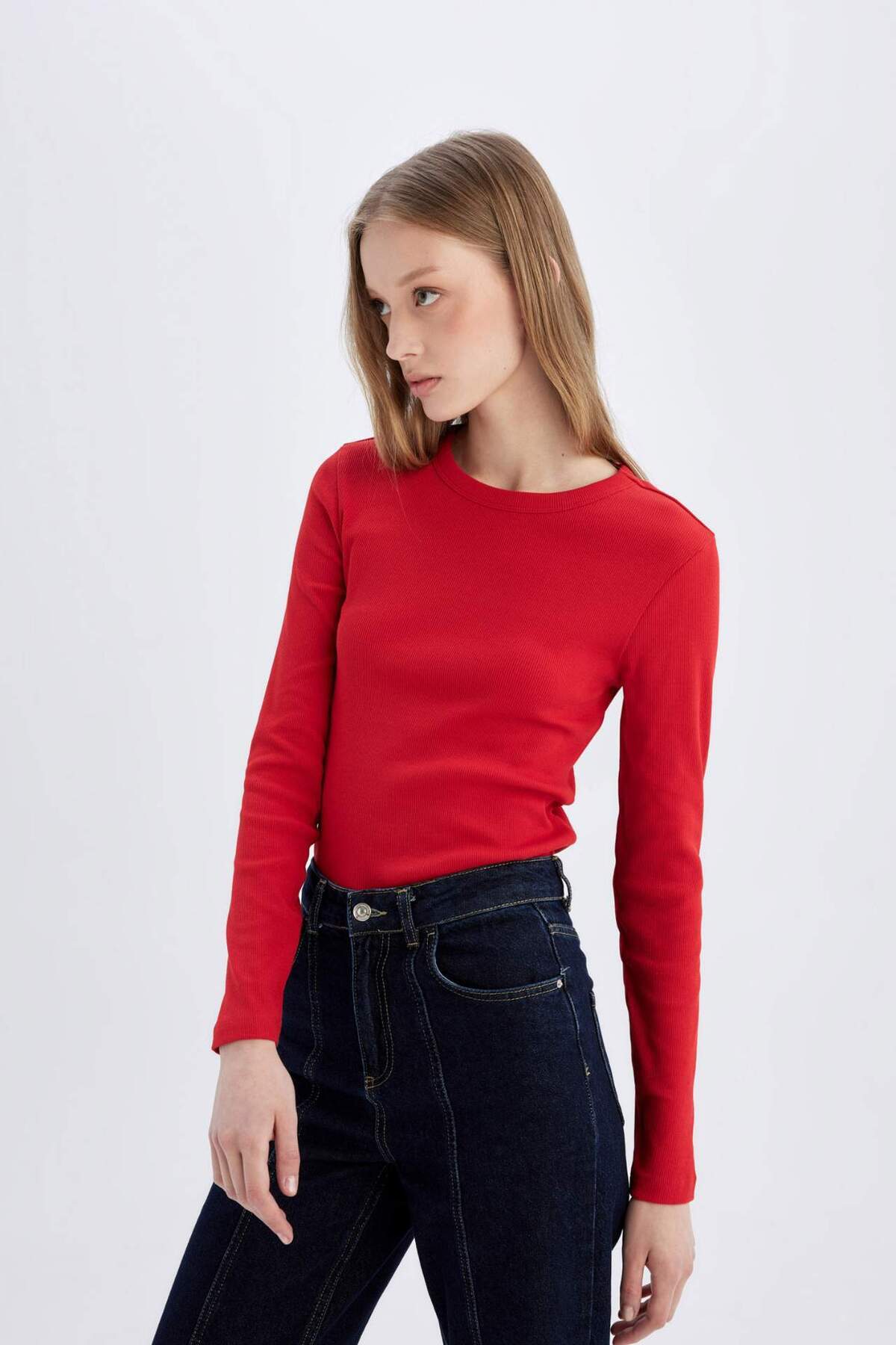 Slim Fit Dar Kesim Bisiklet Yaka Fitilli Kaşkorse Basic Düz Uzun Kollu Tişört C7516AX24AU Slim Fit Dar Kesim Bisiklet Yaka Fitilli Kaşkorse Basic Düz Uzun Kollu Tişört C7516AX24AU 3XL