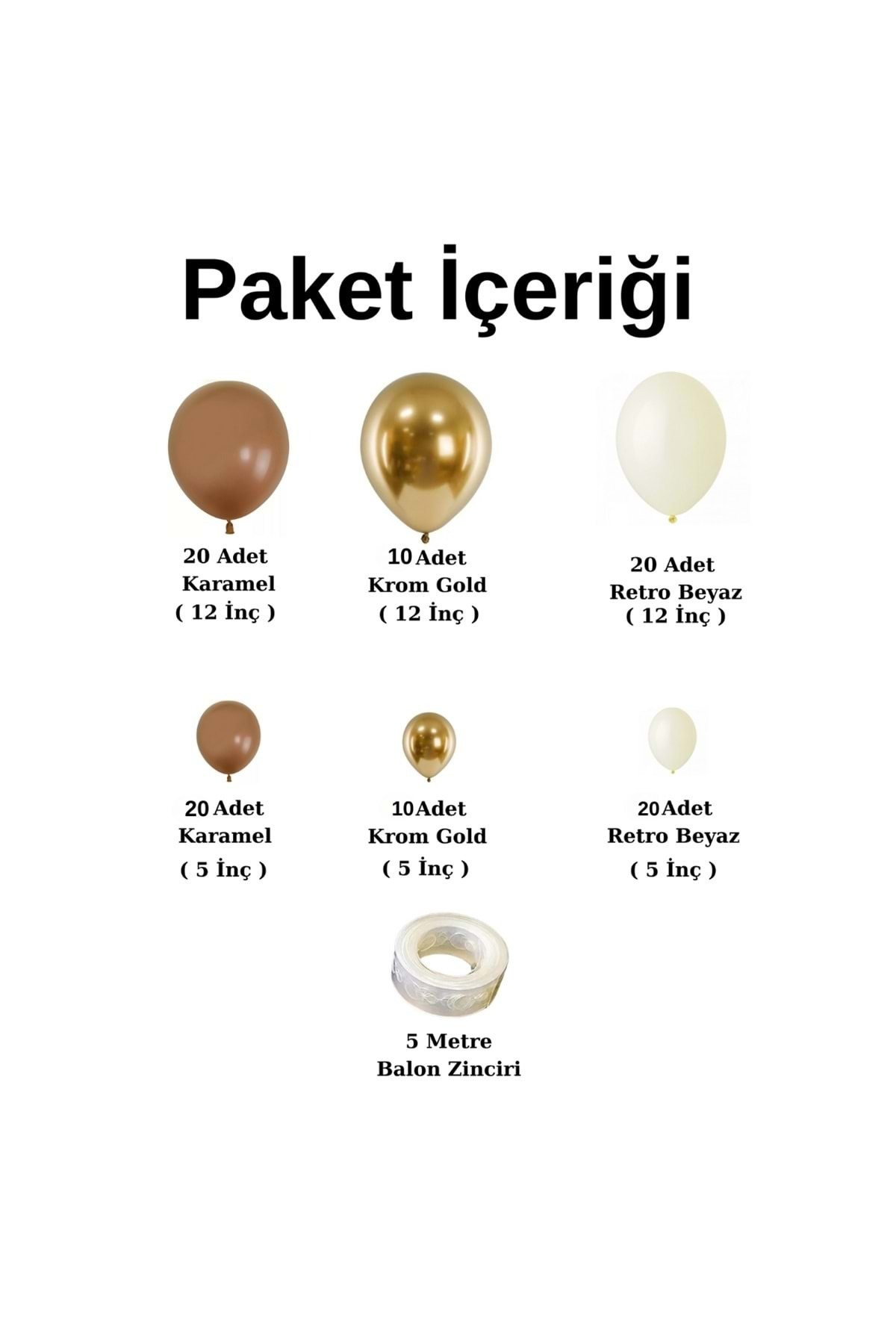 Balon Seti Retro Beyaz-Krom Gold-Karamel 100 Lü Balon Zinciri Seti Balon Seti Retro Beyaz-Krom Gold-Karamel 100 Lü Balon Zinciri Seti ST01911 تک سایز