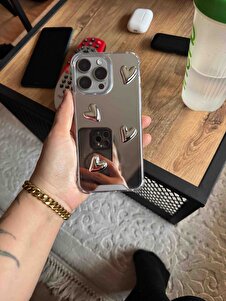 İphone 15 Pro Max uyumlu Aynalı Kılıf Gümüş Kalp Tasarımlı Şık Darbelere Karşı Dayanıklı Esnek Kapak İphone 15 Pro Max uyumlu Aynalı Kılıf Gümüş Kalp Tasarımlı Şık Darbelere Karşı Dayanıklı Esnek Kapak 15promaxkromkalp تک سایز