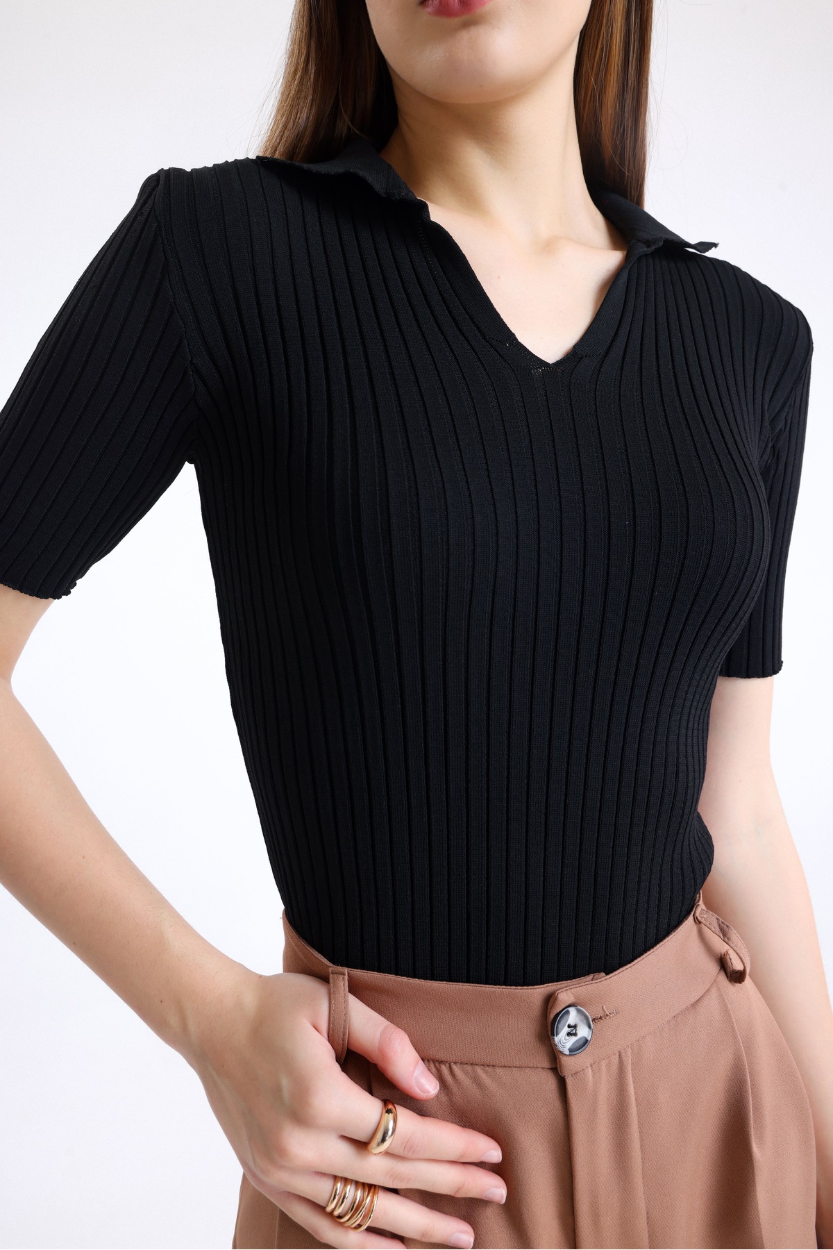 Kadın Polo Yaka Kısa Kollu Triko Bluz Kadın Polo Yaka Kısa Kollu Triko Bluz JC22072413 Standart