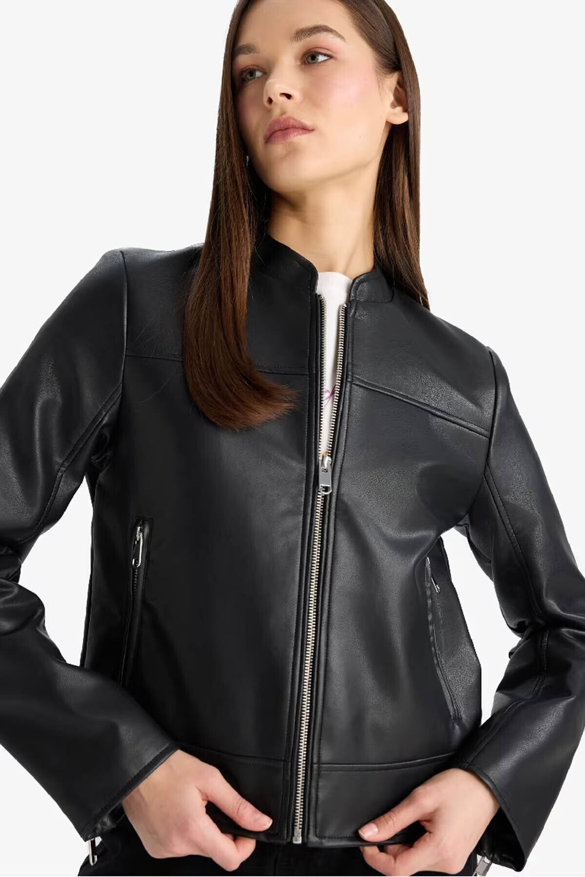 Kolej Yaka Düz Fermuarlı Cepli Suni Deri Bomber Ceket C2686AX24AU Kolej Yaka Düz Fermuarlı Cepli Suni Deri Bomber Ceket C2686AX24AU XL