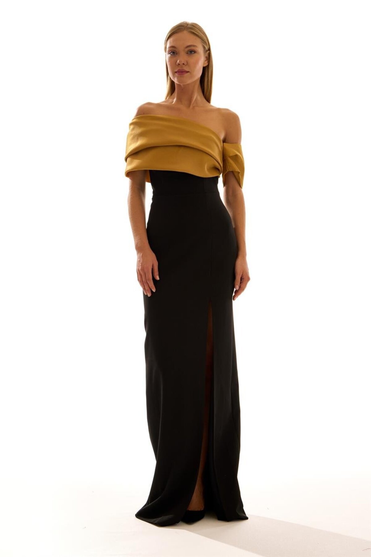 Tek Omuz Düşük Kol Straplez Yaka Krep Kumaş Abiye Elbise Tek Omuz Düşük Kol Straplez Yaka Krep Kumaş Abiye Elbise 5119 42