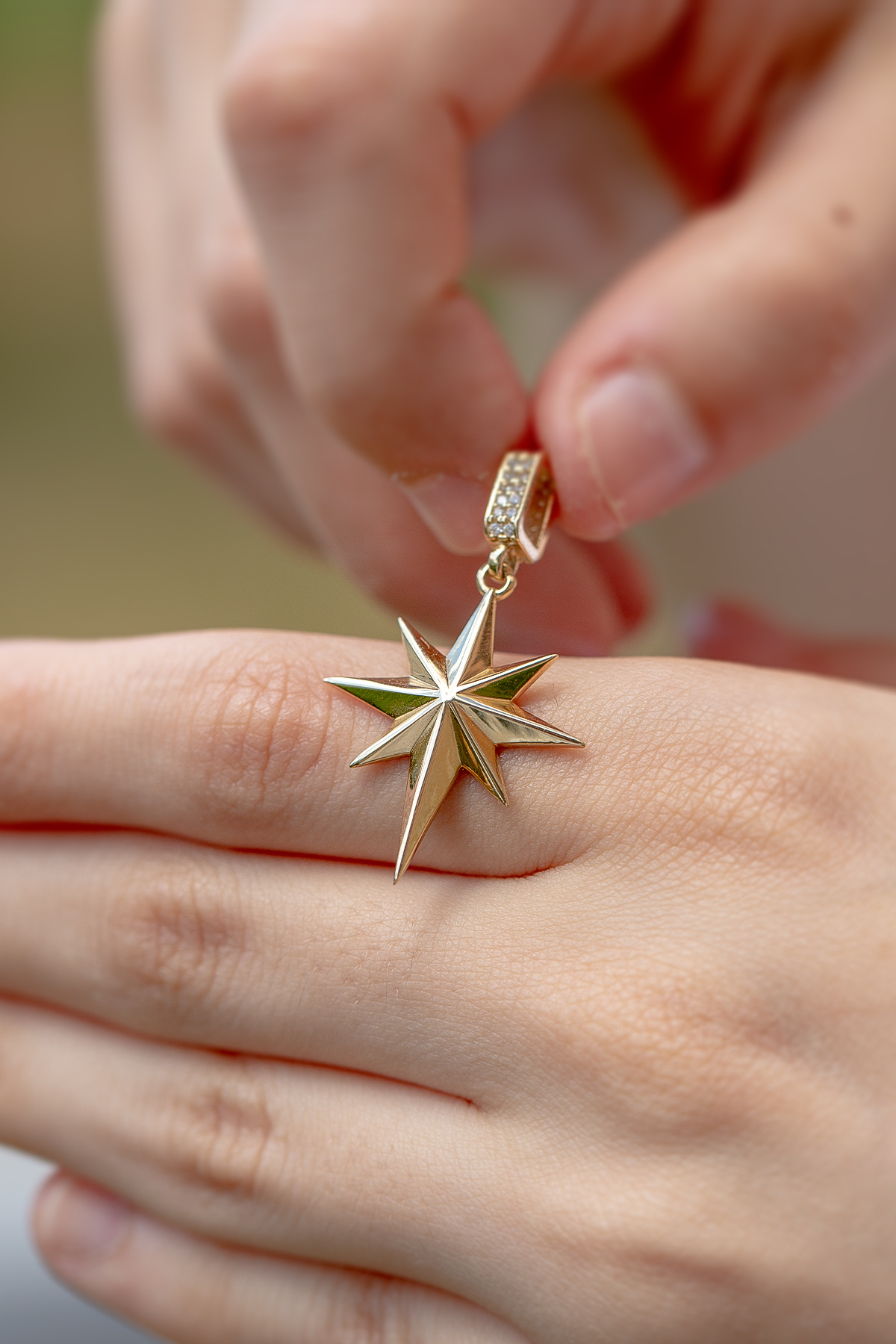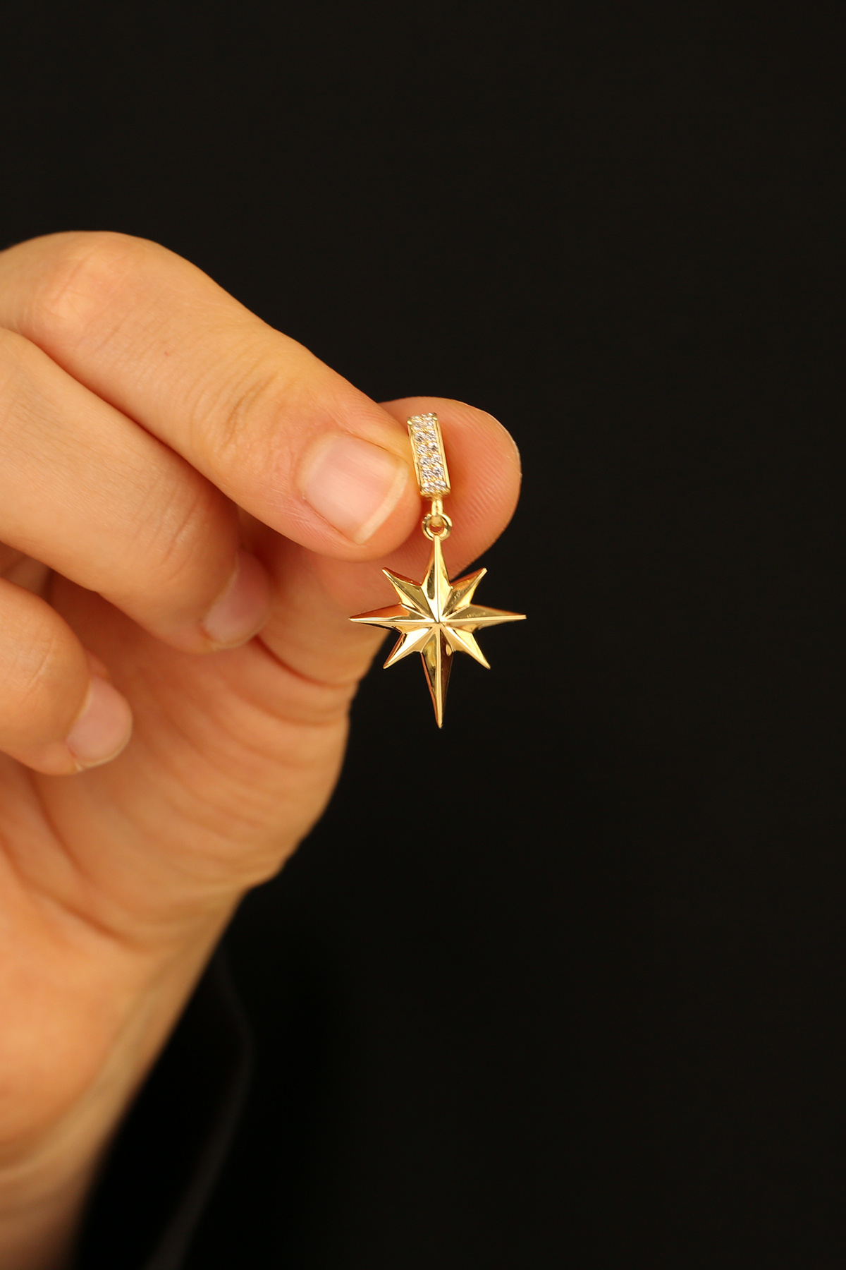 14 Ayar Kuzey Yıldızı Altın Kolye Ucu 14 Ayar Kuzey Yıldızı Altın Kolye Ucu 14Crcv03 تک سایز