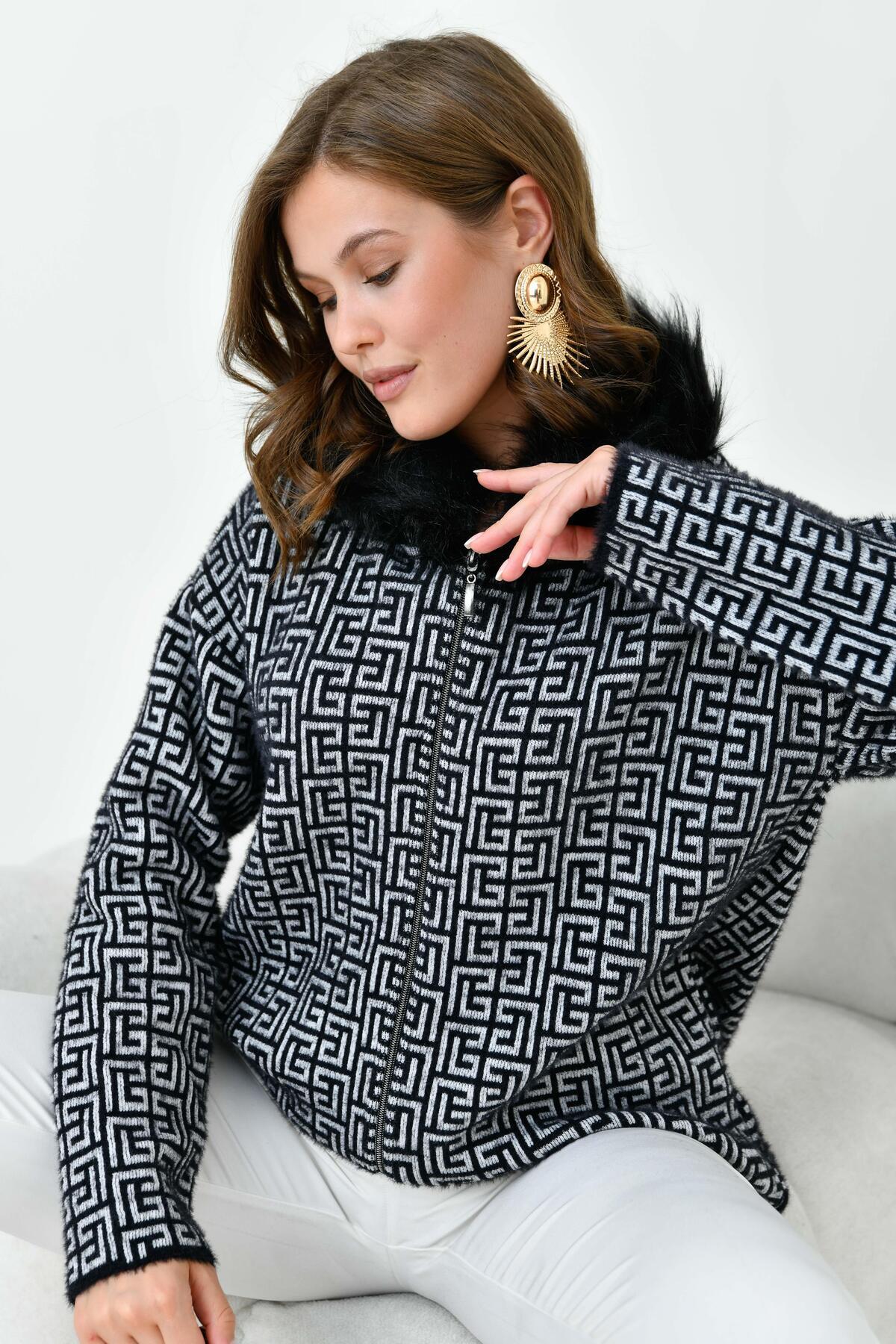 Kadın Kürk Detaylı Hırka Siyah 20733 Kadın Kürk Detaylı Hırka Siyah 20733 42-44