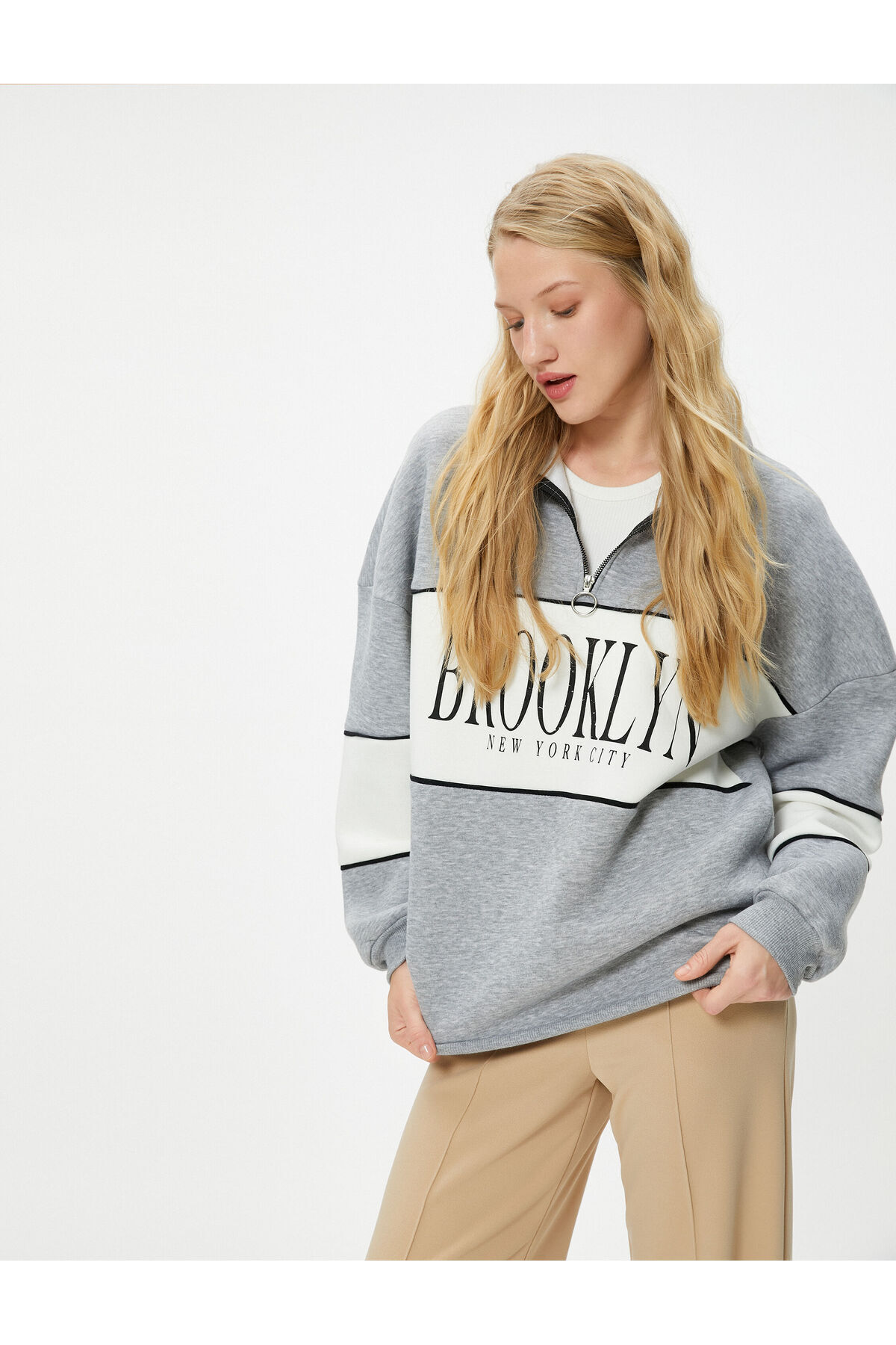 Şardonlu Dik Yaka Sweatshirt Baskılı Yarım Fermuarlı Uzun Kollu Şardonlu Dik Yaka Sweatshirt Baskılı Yarım Fermuarlı Uzun Kollu 4WAL10094IK XL