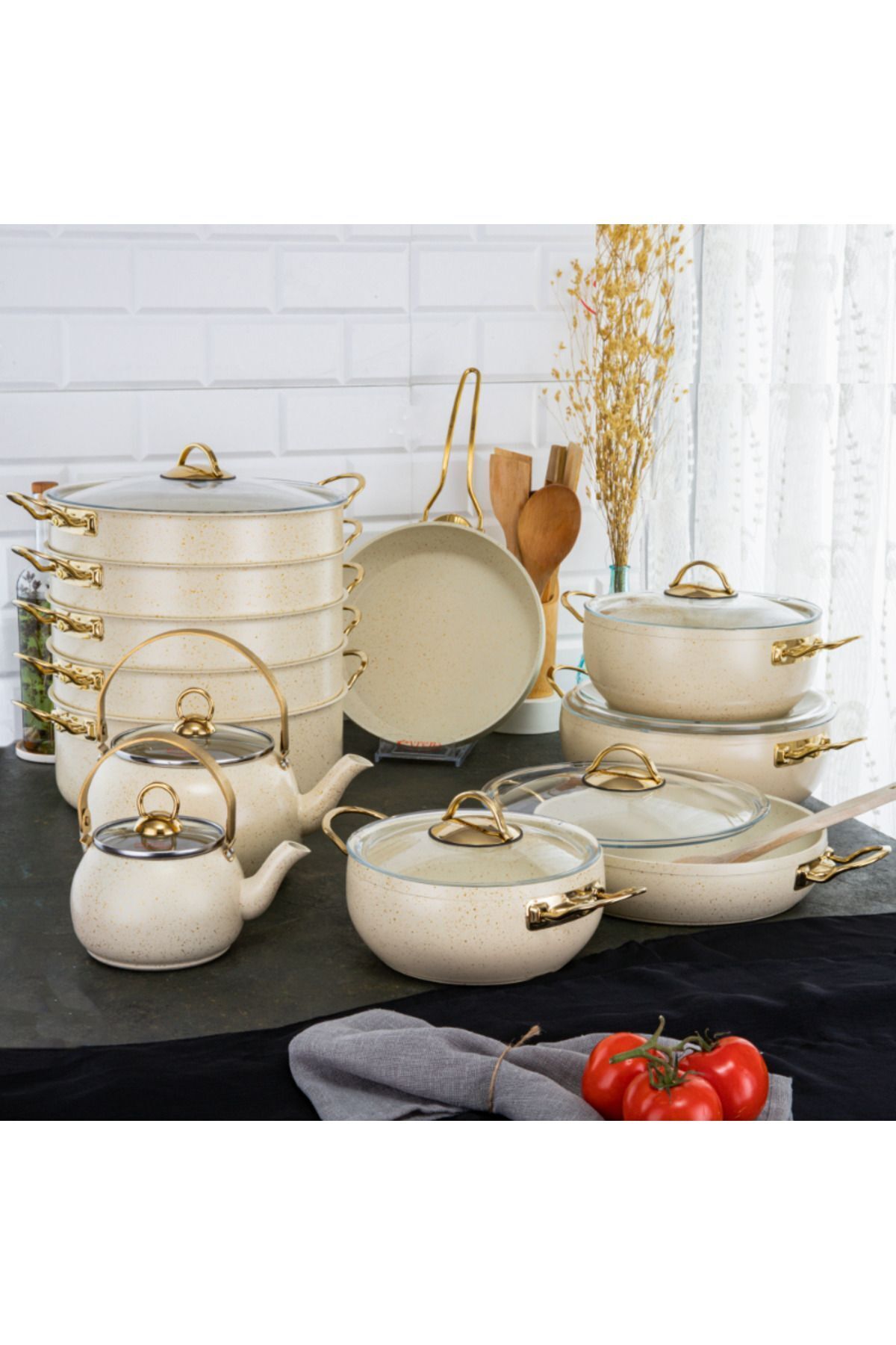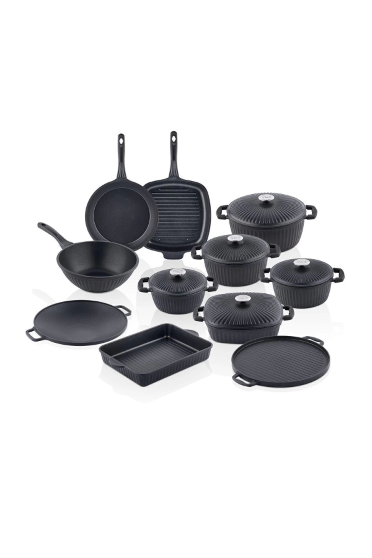 Valeriya Döküm Kapak 16 Parça Çeyiz Seti Siyah Valeriya Döküm Kapak 16 Parça Çeyiz Seti Siyah TAC-8044 تک سایز
