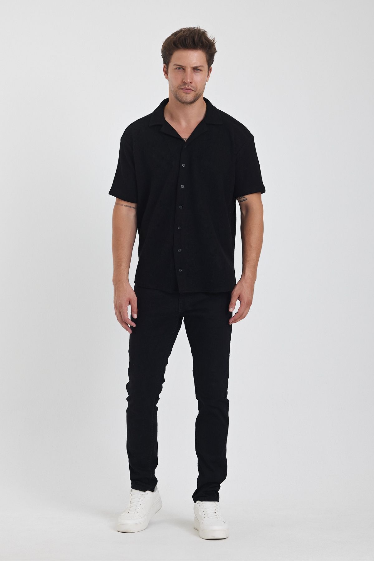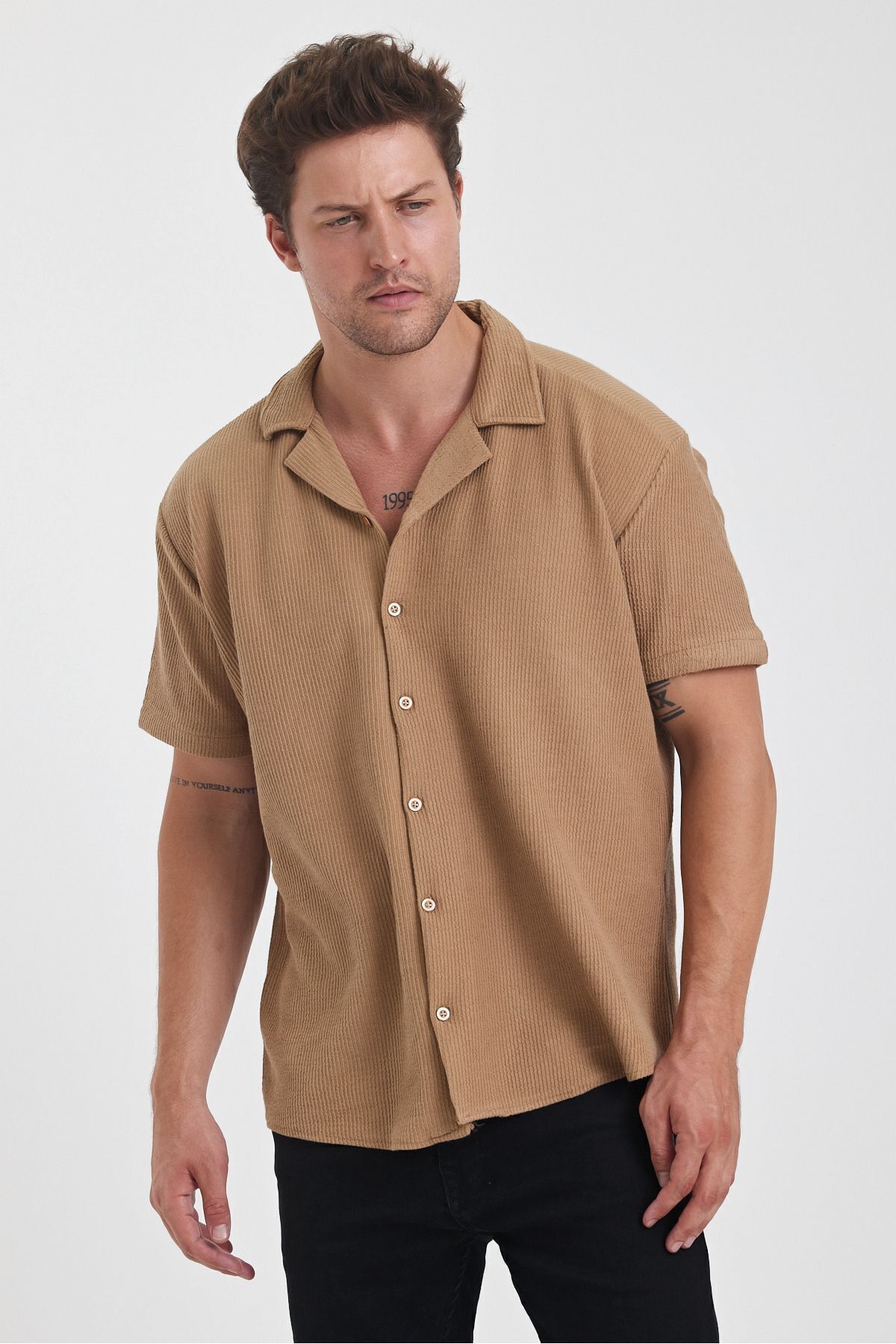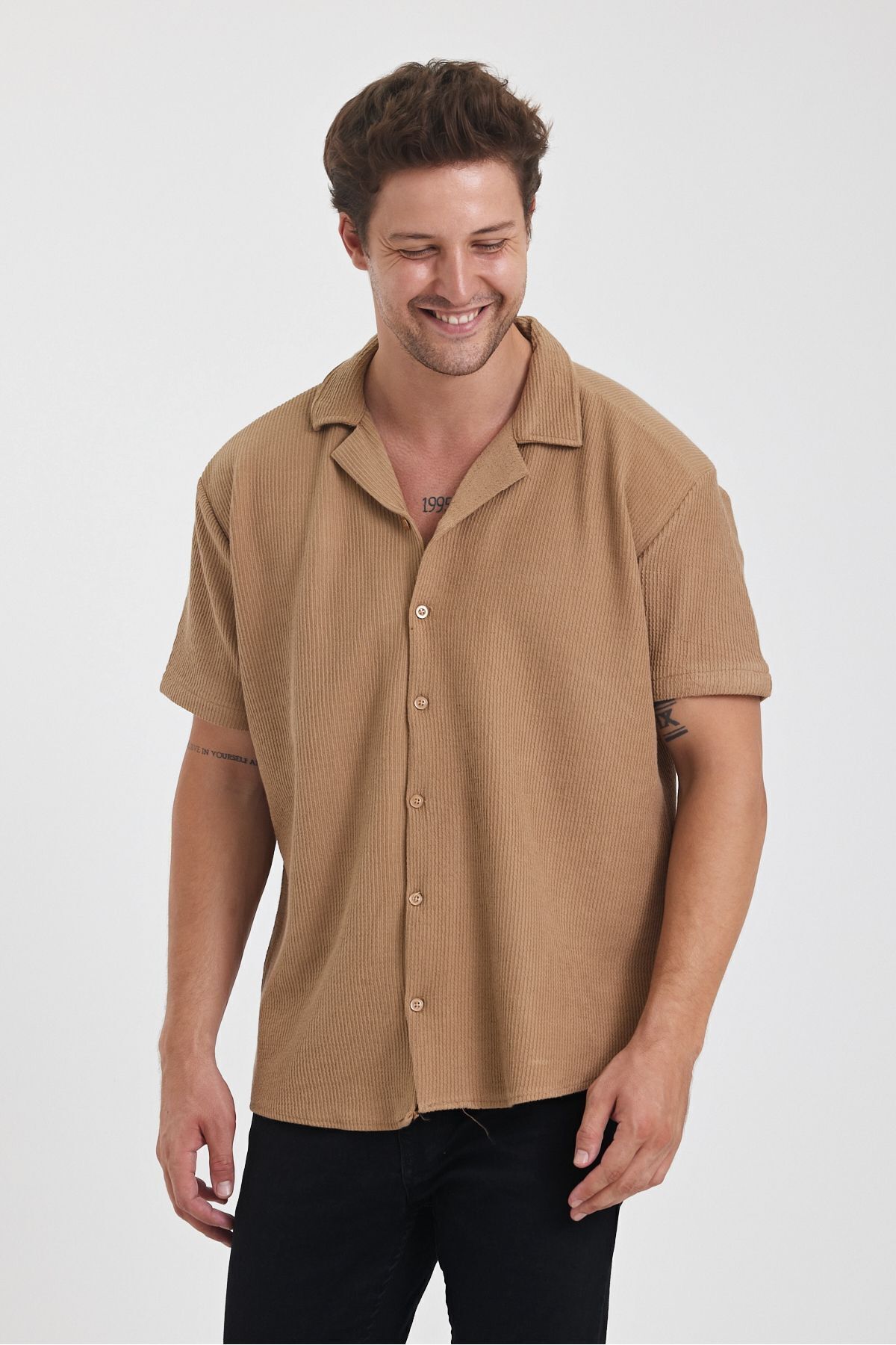 Erkek Pamuklu Esnek Küba Yaka Kısa Kol Gömlek KARAMEL Erkek Pamuklu Esnek Küba Yaka Kısa Kol Gömlek KARAMEL GMLK.0005 S