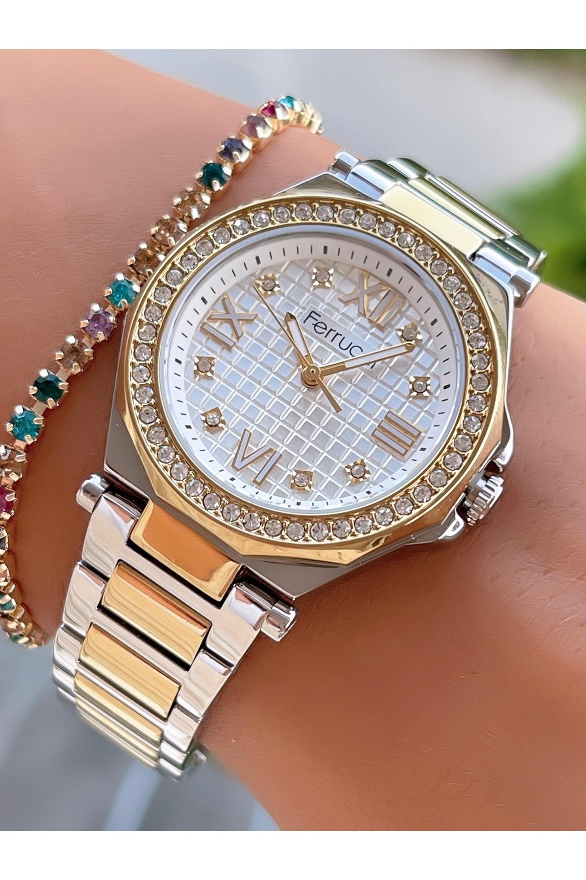 ÇELİK KORDON TAŞ MOTİFLİ KASA 3 ATM SU GEÇİRMEZ KADIN KOL SAATİ+BİLEKLİK HEDİYELİ ÇELİK KORDON TAŞ MOTİFLİ KASA 3 ATM SU GEÇİRMEZ KADIN KOL SAATİ+BİLEKLİK HEDİYELİ FERRUCCİ ÇELİK KORDON KADIN SAAT(C2) تک سایز