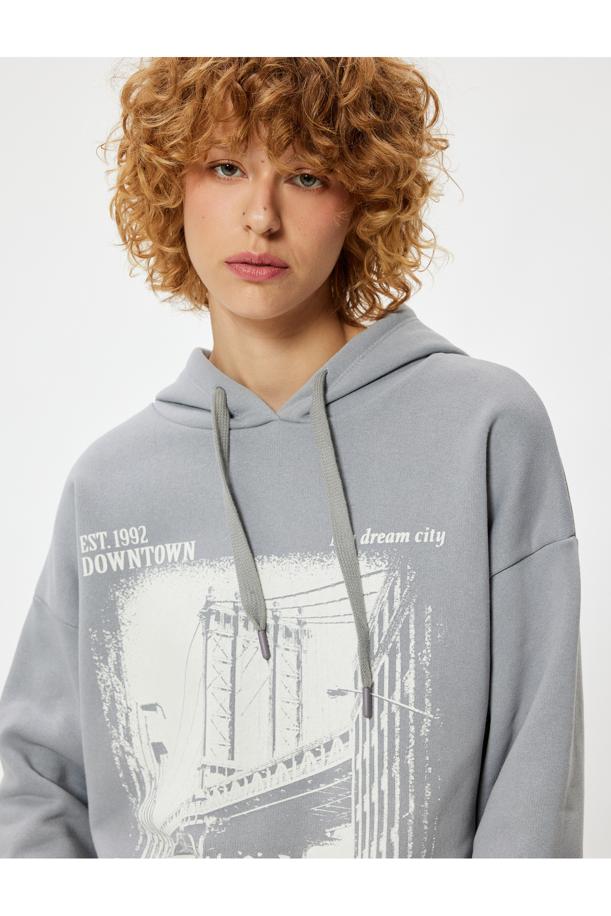 Şardonlu Oversize Kapüşonlu Sweatshirt Slogan Baskılı Uzun Kollu Şardonlu Oversize Kapüşonlu Sweatshirt Slogan Baskılı Uzun Kollu 5WAL10160IK XL