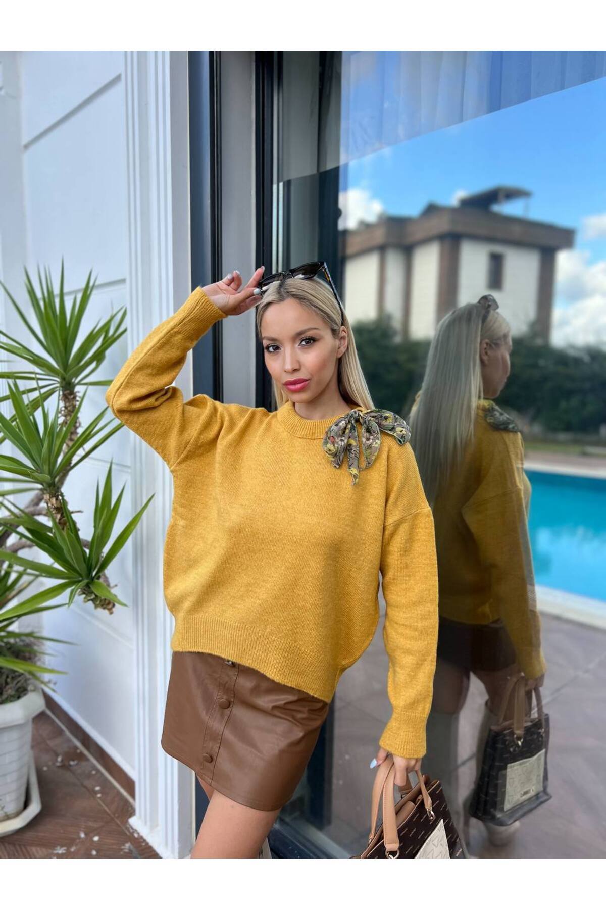 Kadın Hardal Rengi Bisiklet Yaka Uzun Kollu Triko Kazak Kadın Hardal Rengi Bisiklet Yaka Uzun Kollu Triko Kazak JC23072407 Standart