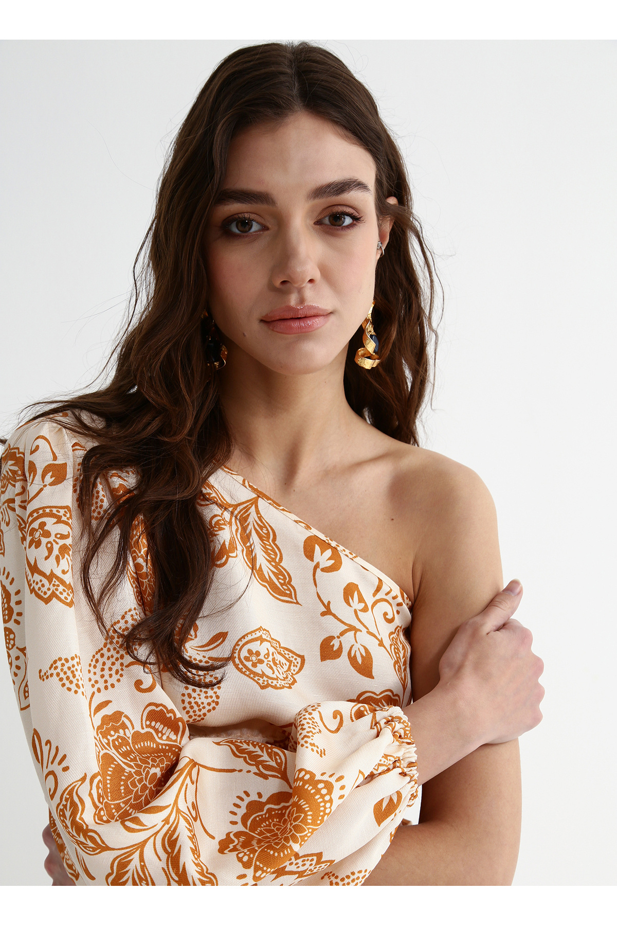 X Melis Ağazat - Çiçekli Tek Omuz Crop Bluz Asimetrik Yaka Uzun Balon Kol Pamuklu X Melis Ağazat - Çiçekli Tek Omuz Crop Bluz Asimetrik Yaka Uzun Balon Kol Pamuklu 4SAK60465PW 42