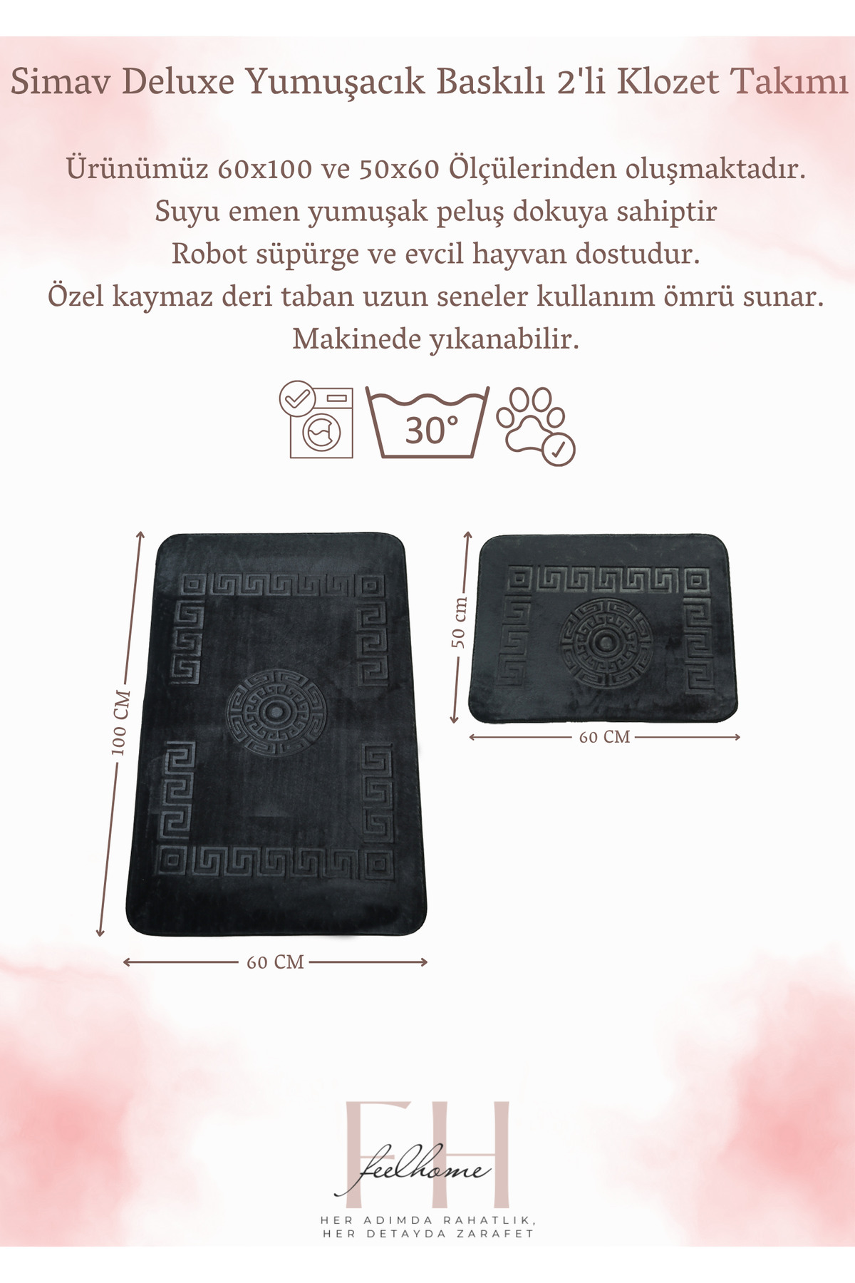 Simav Deluxe Kaymaz Taban, Yumuşacık, Emici 2'li Lüks Baskılı Banyo Paspası Antrasit Simav Deluxe Kaymaz Taban, Yumuşacık, Emici 2'li Lüks Baskılı Banyo Paspası Antrasit SİMAV تک سایز