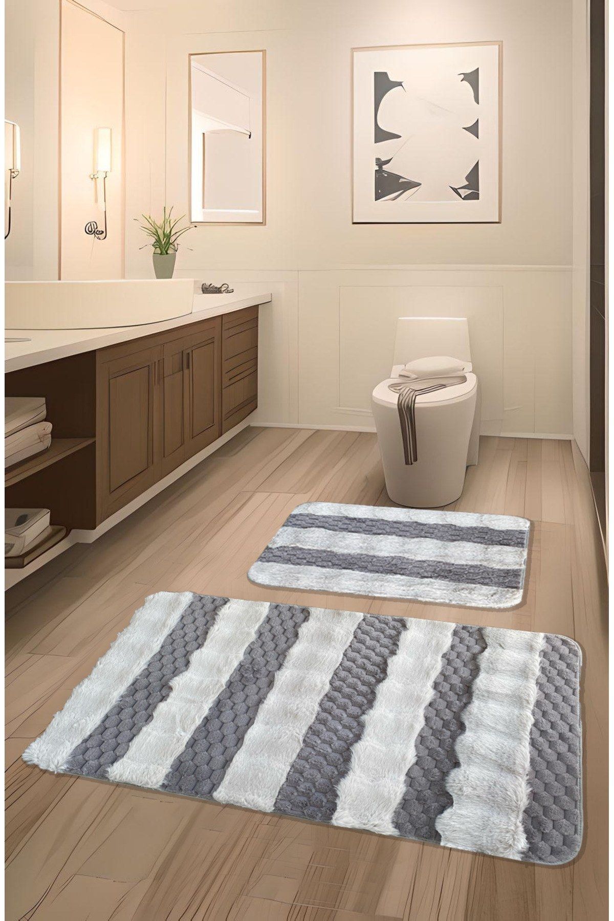 Simav Deluxe Kaymaz Taban, Yumuşacık, Emici 2'li Lüks Baskılı Banyo Paspası Gri Simav Deluxe Kaymaz Taban, Yumuşacık, Emici 2'li Lüks Baskılı Banyo Paspası Gri SİMAV تک سایز