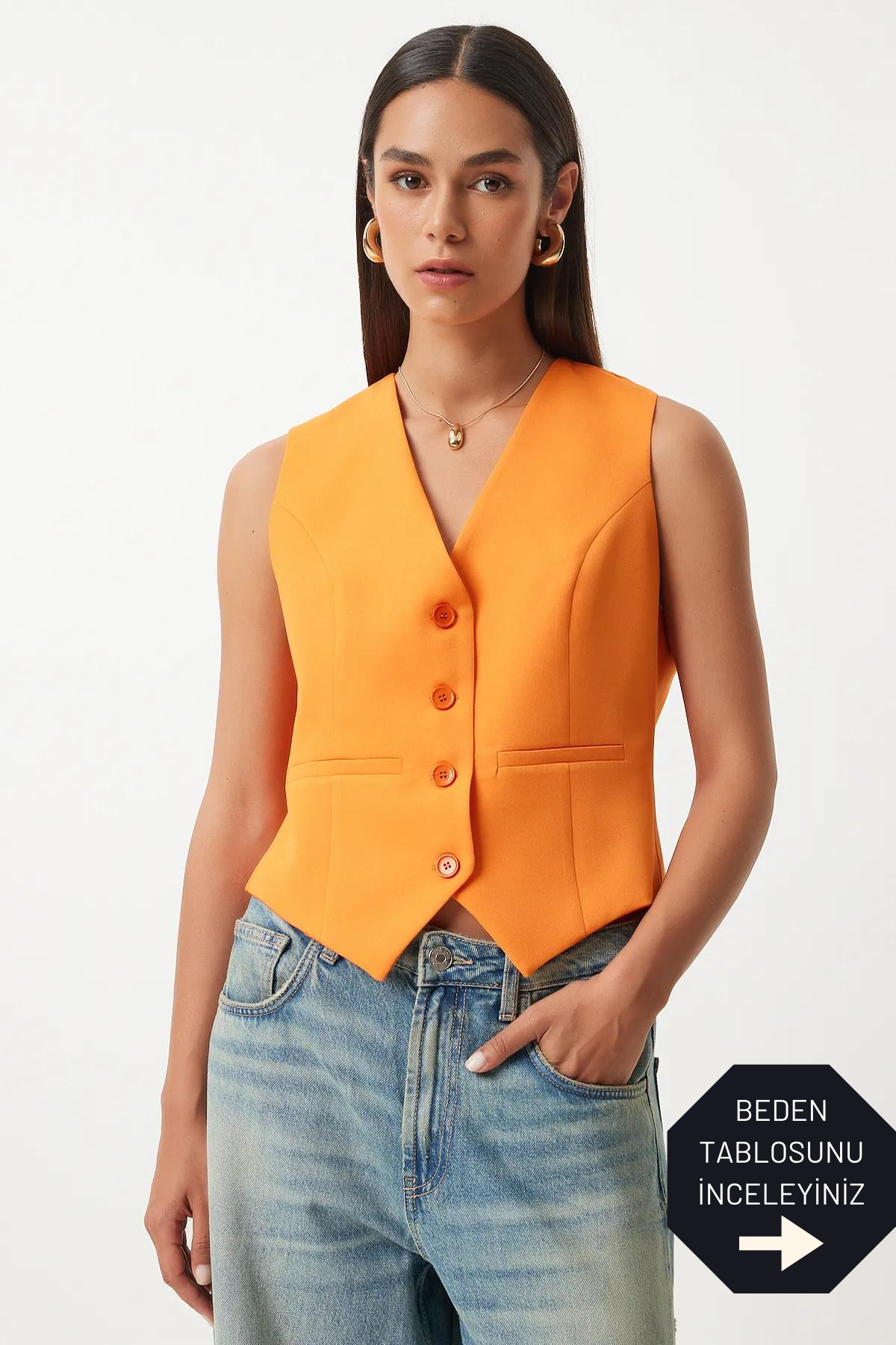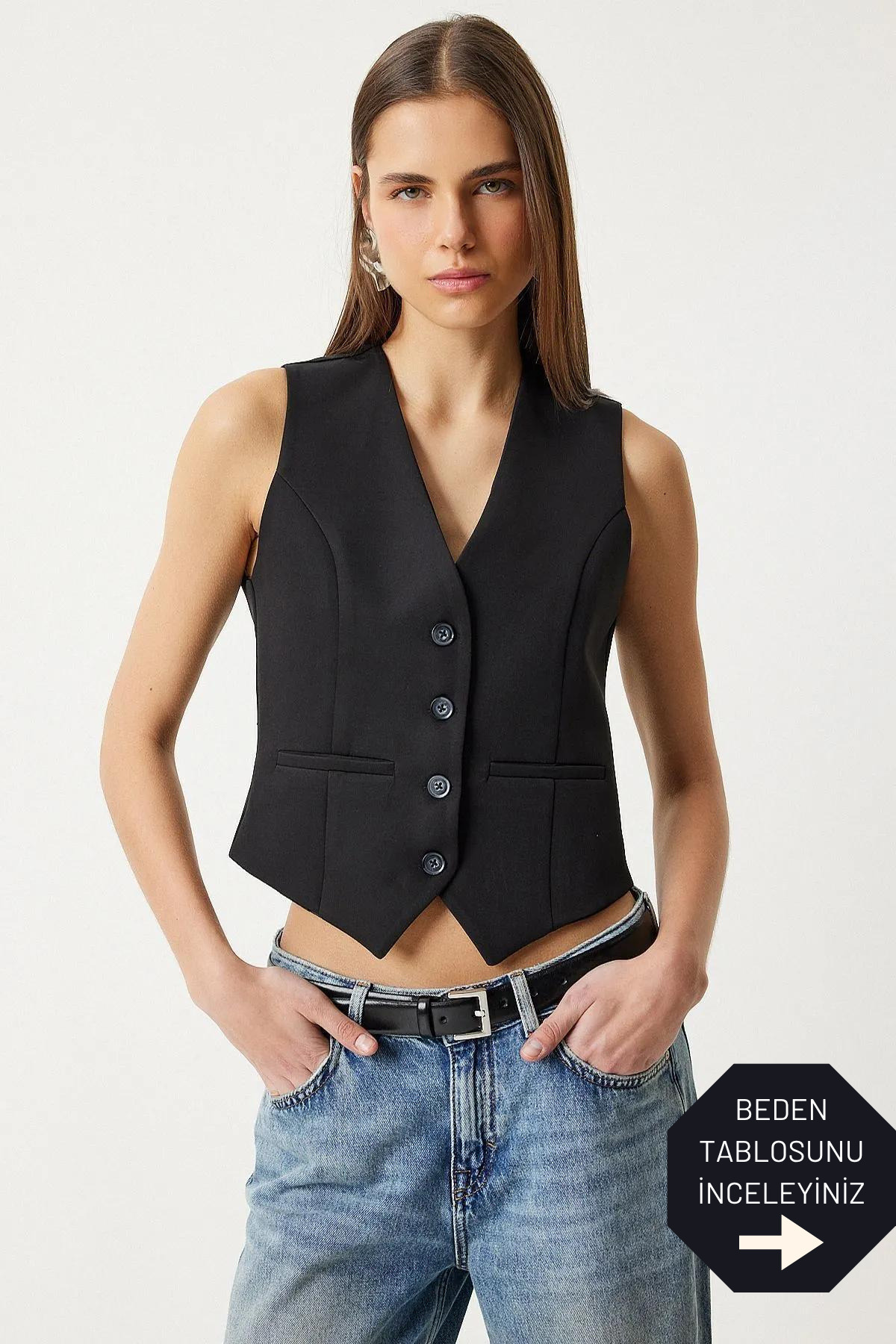 Kadın Fuşya V Yaka Düğmeli Dokuma Yelek Kadın Fuşya V Yaka Düğmeli Dokuma Yelek VDTYLK XL