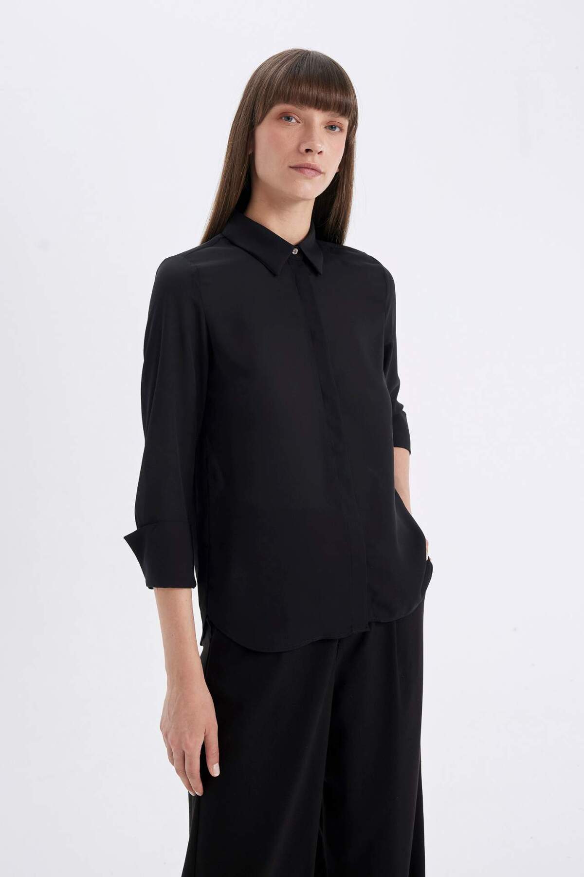 Regular Fit Basic Düz Krep Dokuma Uzun Kollu Siyah Gömlek D3151AX24AU Regular Fit Basic Düz Krep Dokuma Uzun Kollu Siyah Gömlek D3151AX24AU 2XL