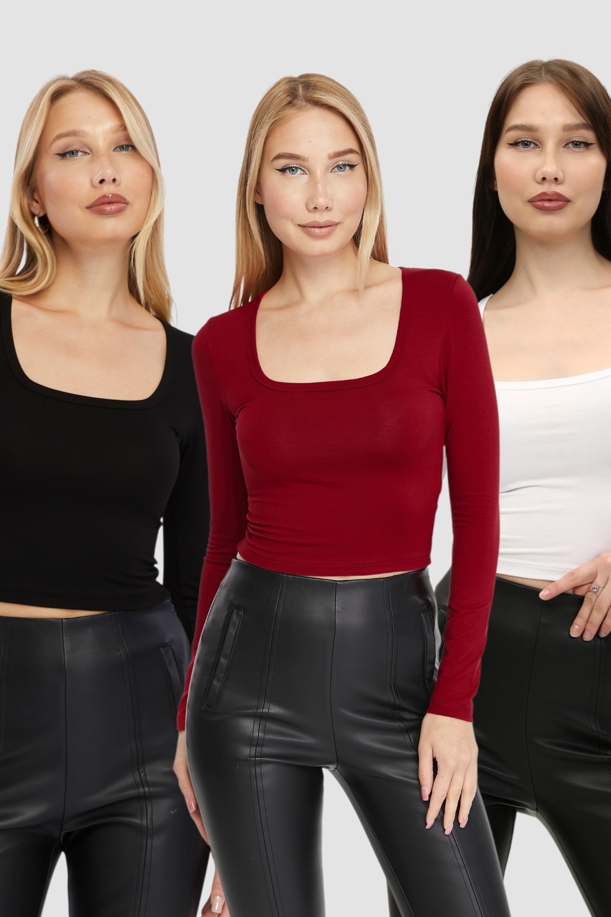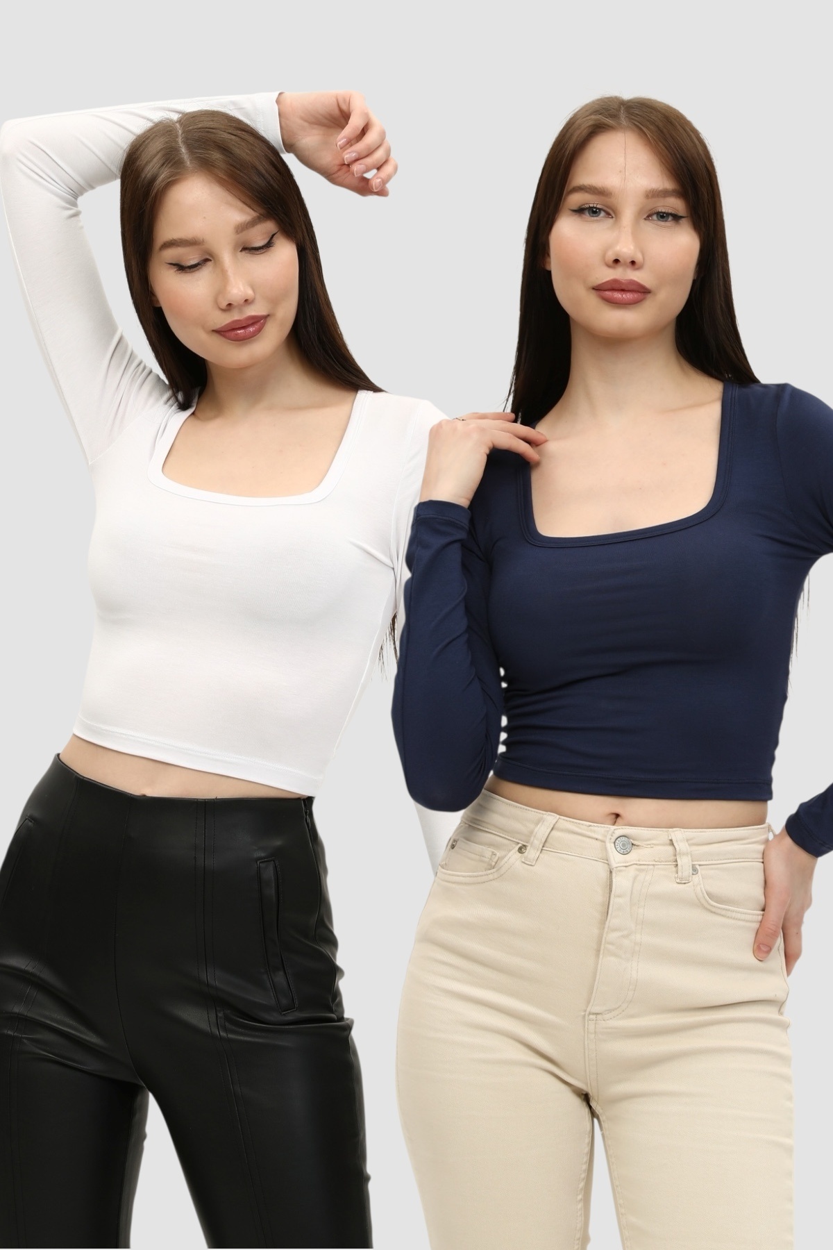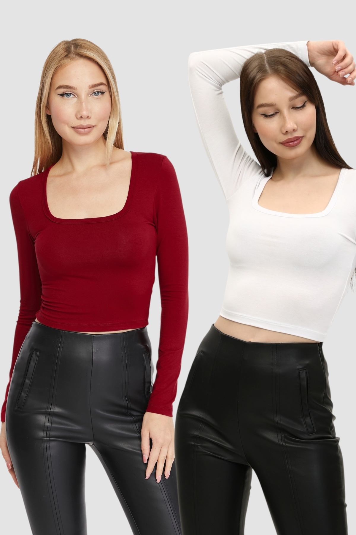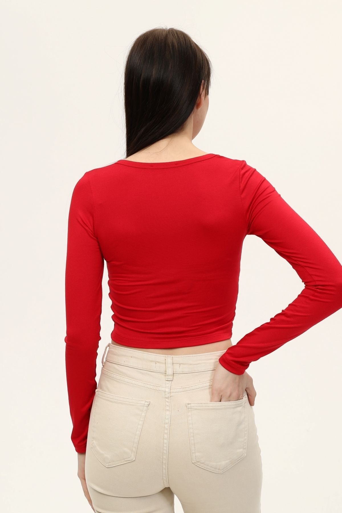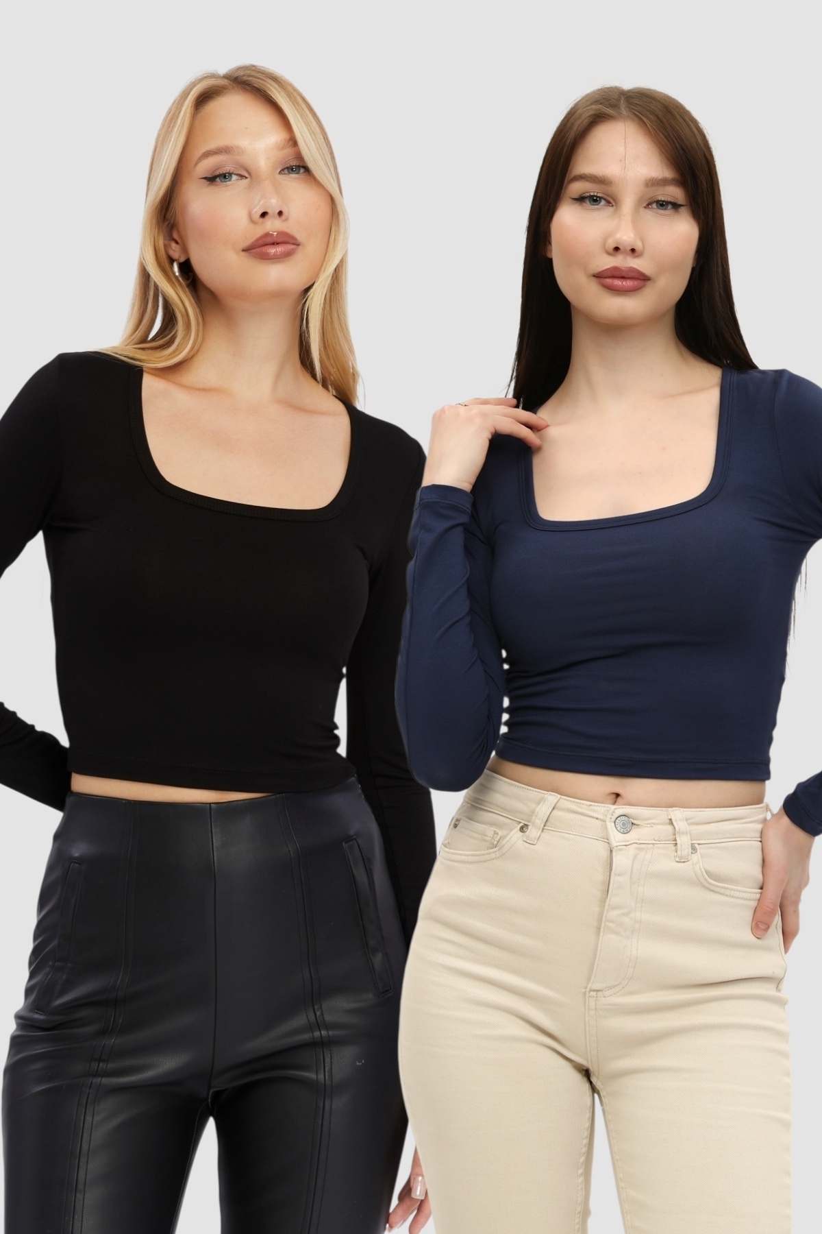 Kadın Siyah Kırmızı Kare Yaka 2'li Crop Body Kadın Siyah Kırmızı Kare Yaka 2'li Crop Body ENT03 L