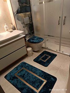 Meram Kaymaz Taban,Emici 2'li Ultra Lüks Deri Detaylı Banyo Paspası Seti Mavi&Gold Meram Kaymaz Taban,Emici 2'li Ultra Lüks Deri Detaylı Banyo Paspası Seti Mavi&Gold VSC تک سایز