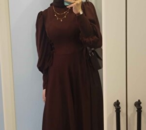 Bel İki Yanı Boydan Bağcıklı Tesettür Elbise Bel İki Yanı Boydan Bağcıklı Tesettür Elbise 2240 44