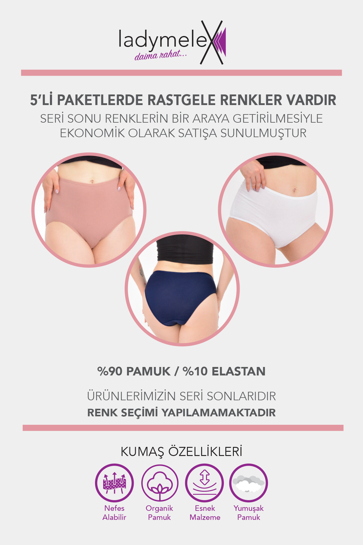 Kadın Külot, Yüksek Bel Külot, 5'li Paket, Koyu Soft, Yumuşak Esnek Kumaş Kadın Külot, Yüksek Bel Külot, 5'li Paket, Koyu Soft, Yumuşak Esnek Kumaş NEWLMX7031YB 3XL