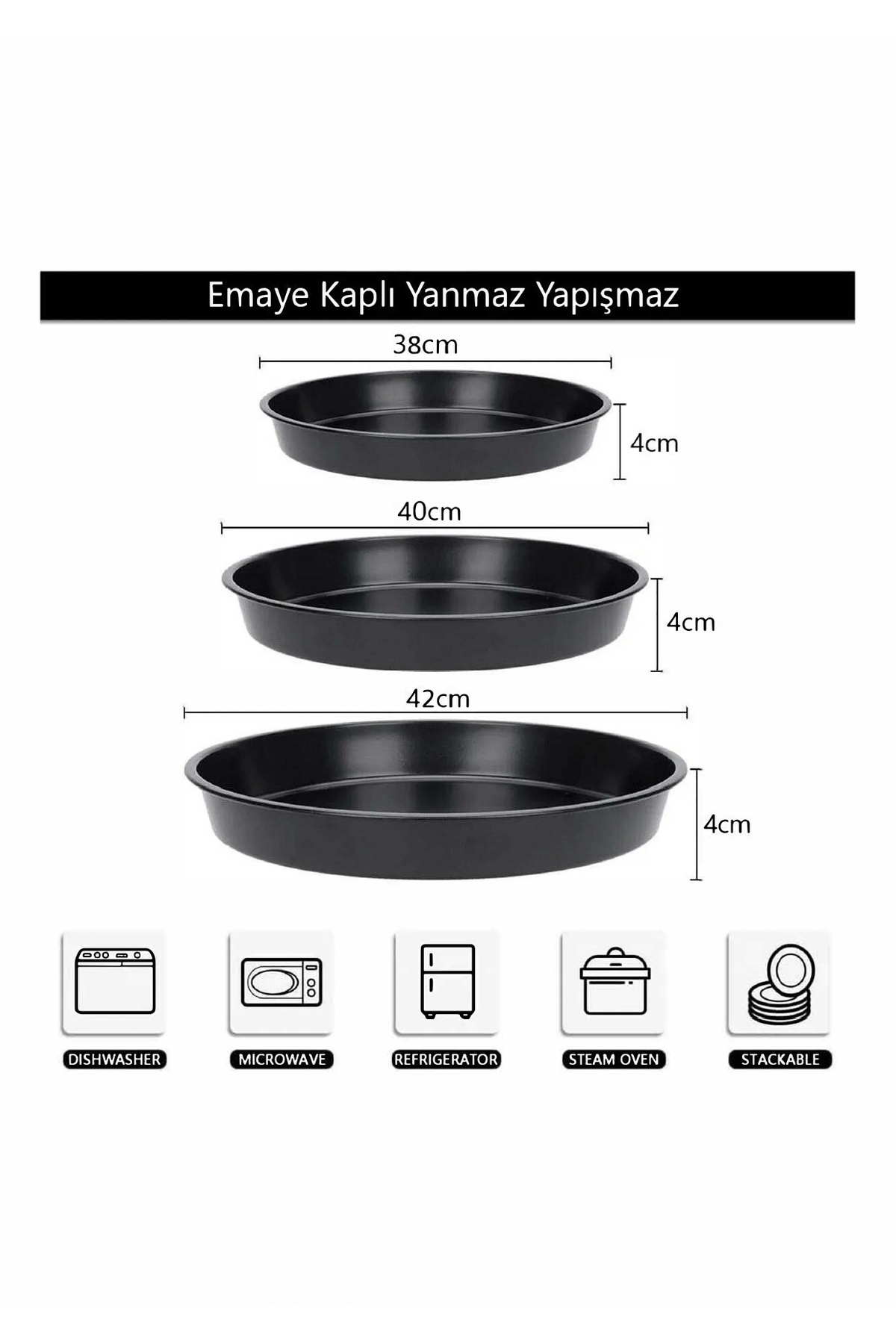 38-40-42 Cm 3'lü Siyah Parlak Emaye Yuvarlak Fırın Tepsi Seti 38-40-42 Cm 3'lü Siyah Parlak Emaye Yuvarlak Fırın Tepsi Seti COOK-SET02 تک سایز